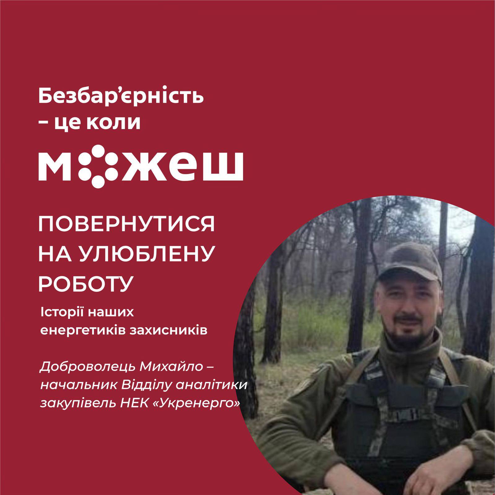 Добровольцем пішов на фронт на самому початку повномасштабного вторгнення Михайло – начальник Відділу аналітики закупівель НЕК «Укренерго».