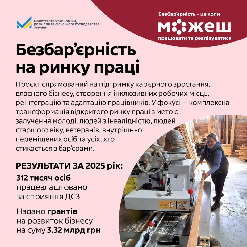 📍 Економічну безбар’єрність реалізує проєкт «Безбар’єрність на ринку праці» (Мінекономіки): понад 2,9 тис. роботодавців отримали державні компенсації за облаштування безбар’єрних робочих місць для людей з інвалідністю.
