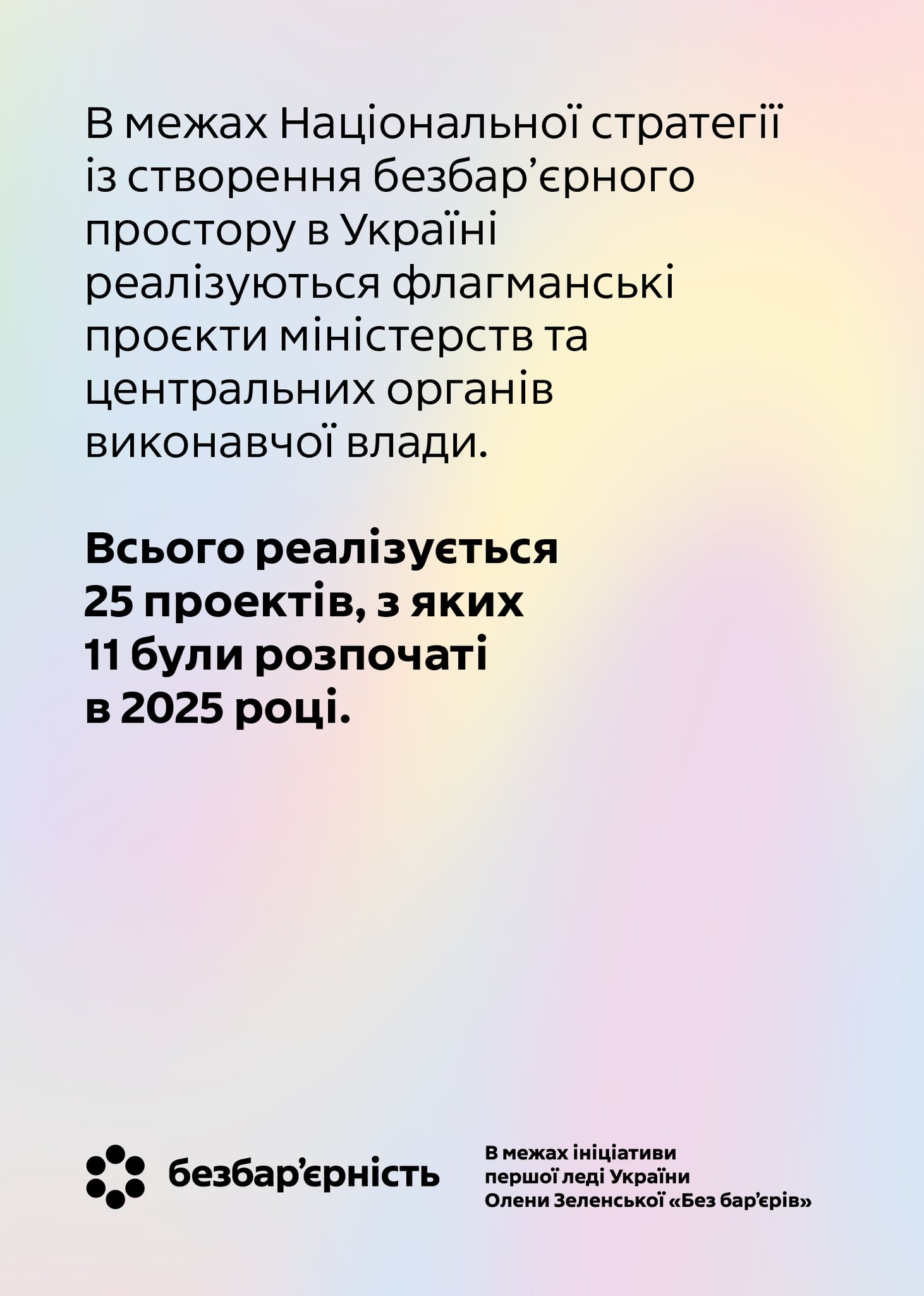 📋 У межах Національної стратегії зі створення безбарʼєрного простору та моєї ініціативи «Без бар’єрів» міністерства у співпраці з громадськістю та міжнародними партнерами реалізують уже 25 проєктів. Одинадцять із них почалися саме у 2025 році.