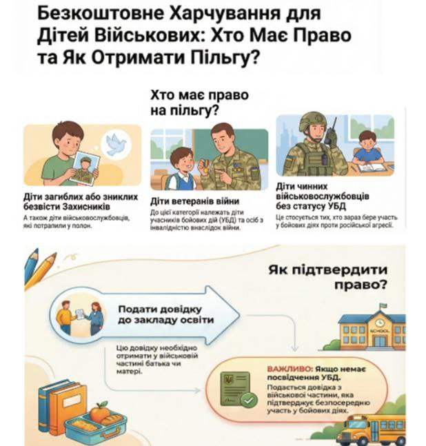 Багато батьків, які нині несуть службу у ЗСУ, запитують, чи мають їхні діти, які навчаються у Кропивницьких загальноосвітніх закладах, право на пільгове харчування у шкільній їдальні і як отримати цю пільгу?