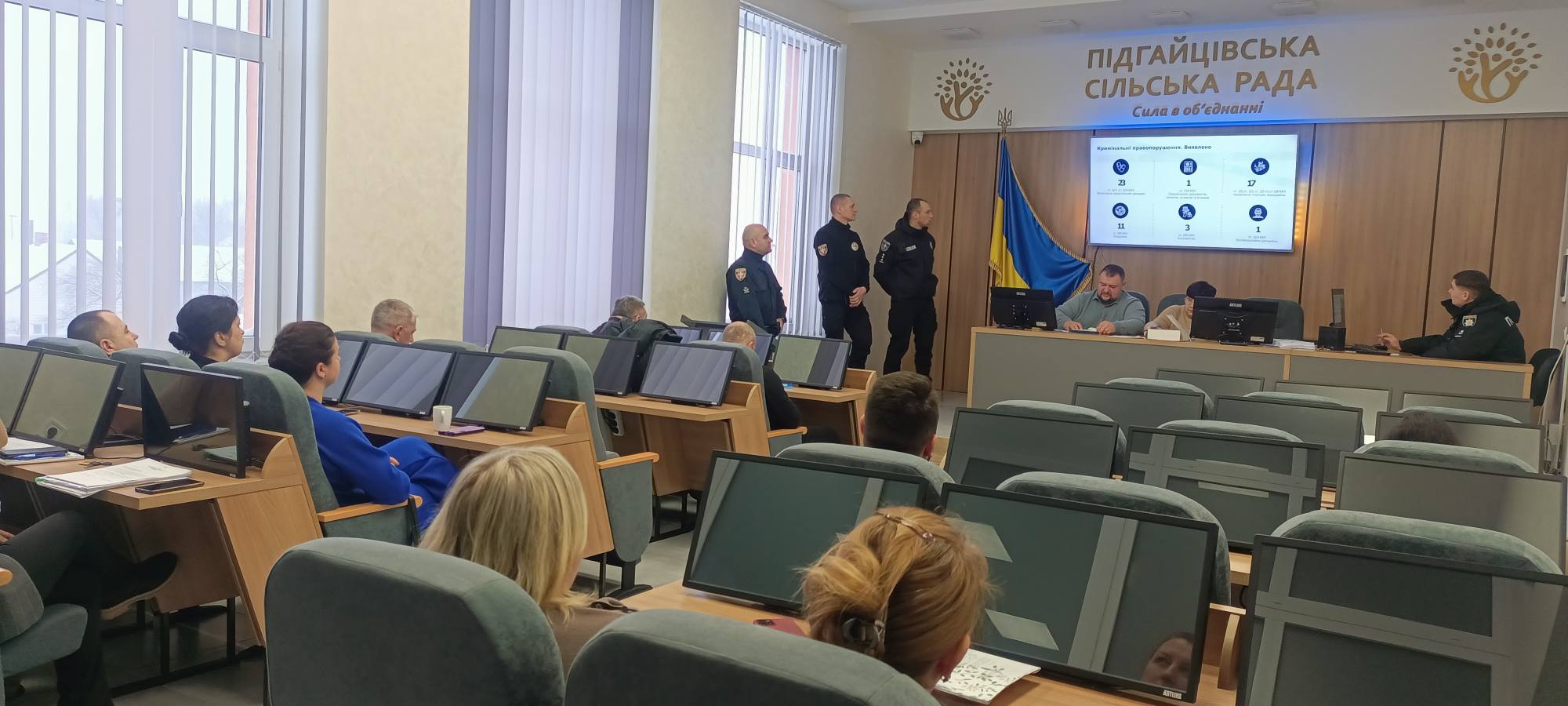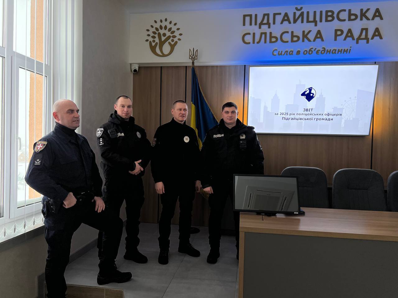 🗓️ 8 січня, під час засідання виконавчого комітету Підгайцівської сільської ради, поліцейські офіцери громади (ПОГ) представили звіт про свою діяльність за 2025 рік. На сьогодні 👮♂️ 4 офіцери забезпечують правопорядок у 20 населених пунктах громади, де проживає понад 25 тисяч мешканців та понад 1000 внутрішньо переміщених осіб. 🤝