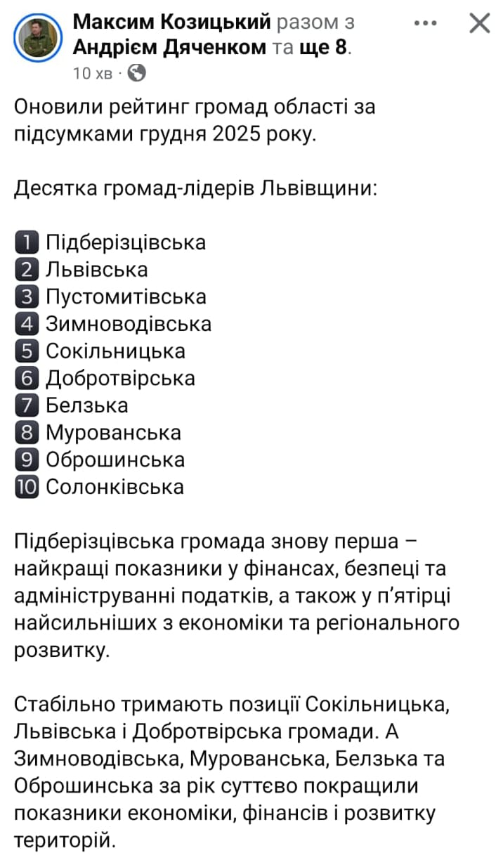 📊 Белзька громада — у ТОП-10 громад Львівщини