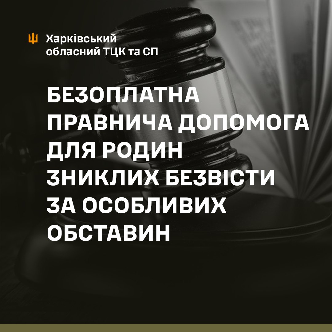Близькі родичі та члени сім’ї особи, зниклої безвісти за особливих обставин, мають право на безоплатну правничу допомогу відповідно до Закону України “Про безоплатну правничу допомогу”.