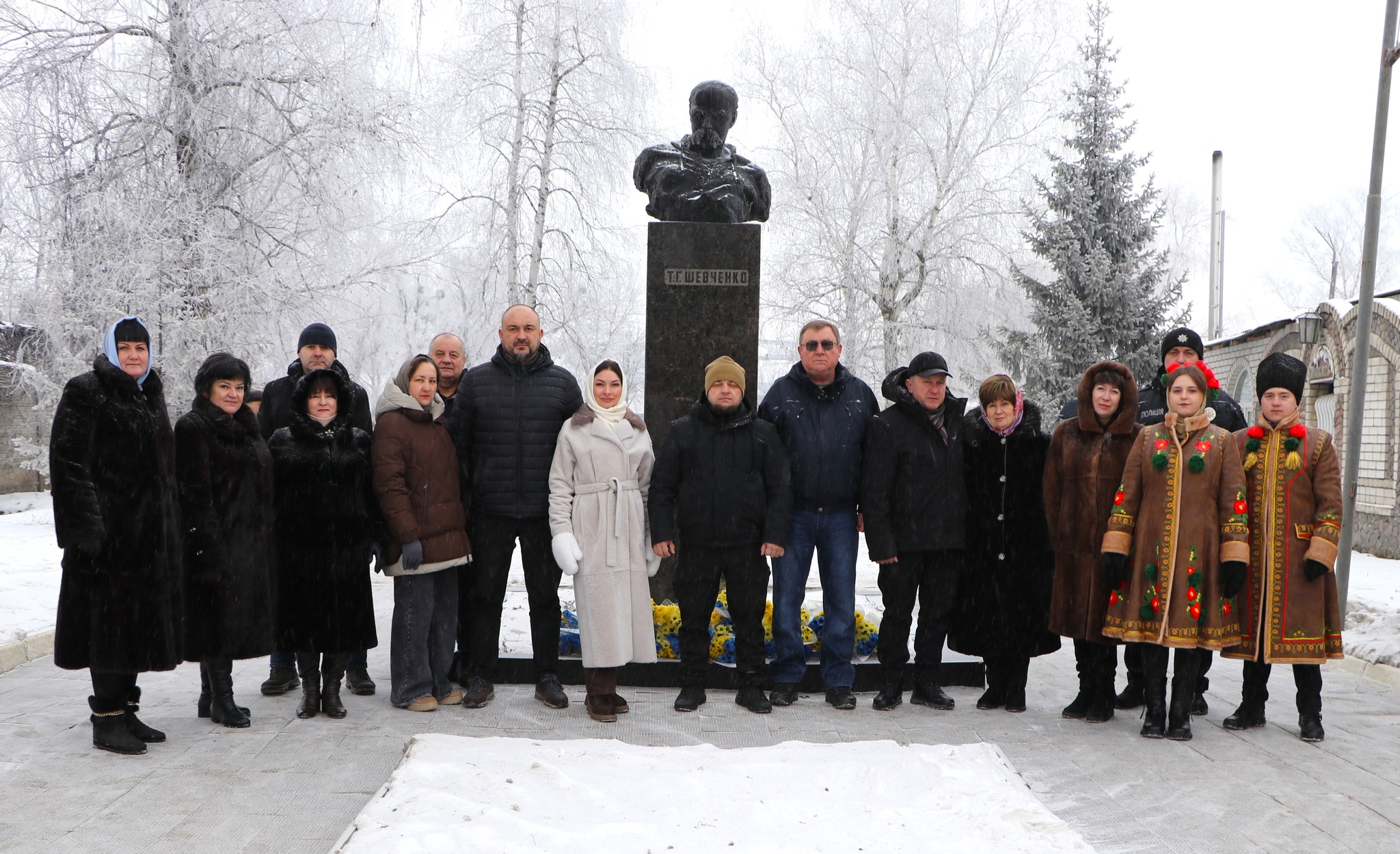 Хвилиною мовчання присутні згадали героїв, які віддали життя за цілісність України, та поклали квіти до погруддя Тараса Шевченка.