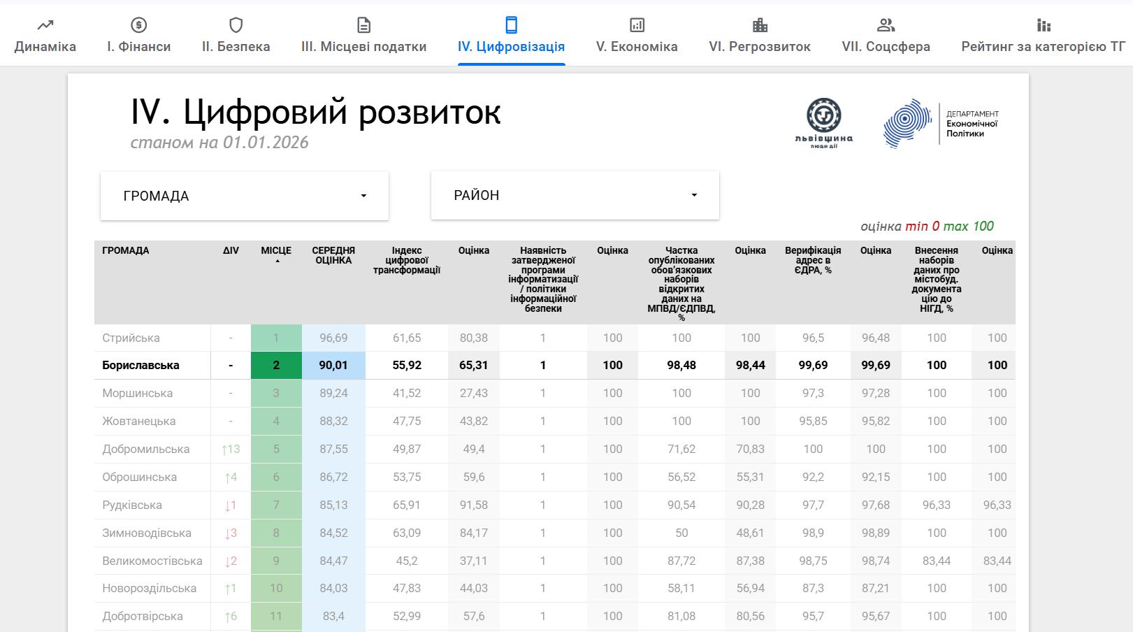 🏆 Бориславська громада — у лідерах Львівщини: 2-ге місце в області за рівнем цифровізації та першість у районі за загальними підсумками 2025 року