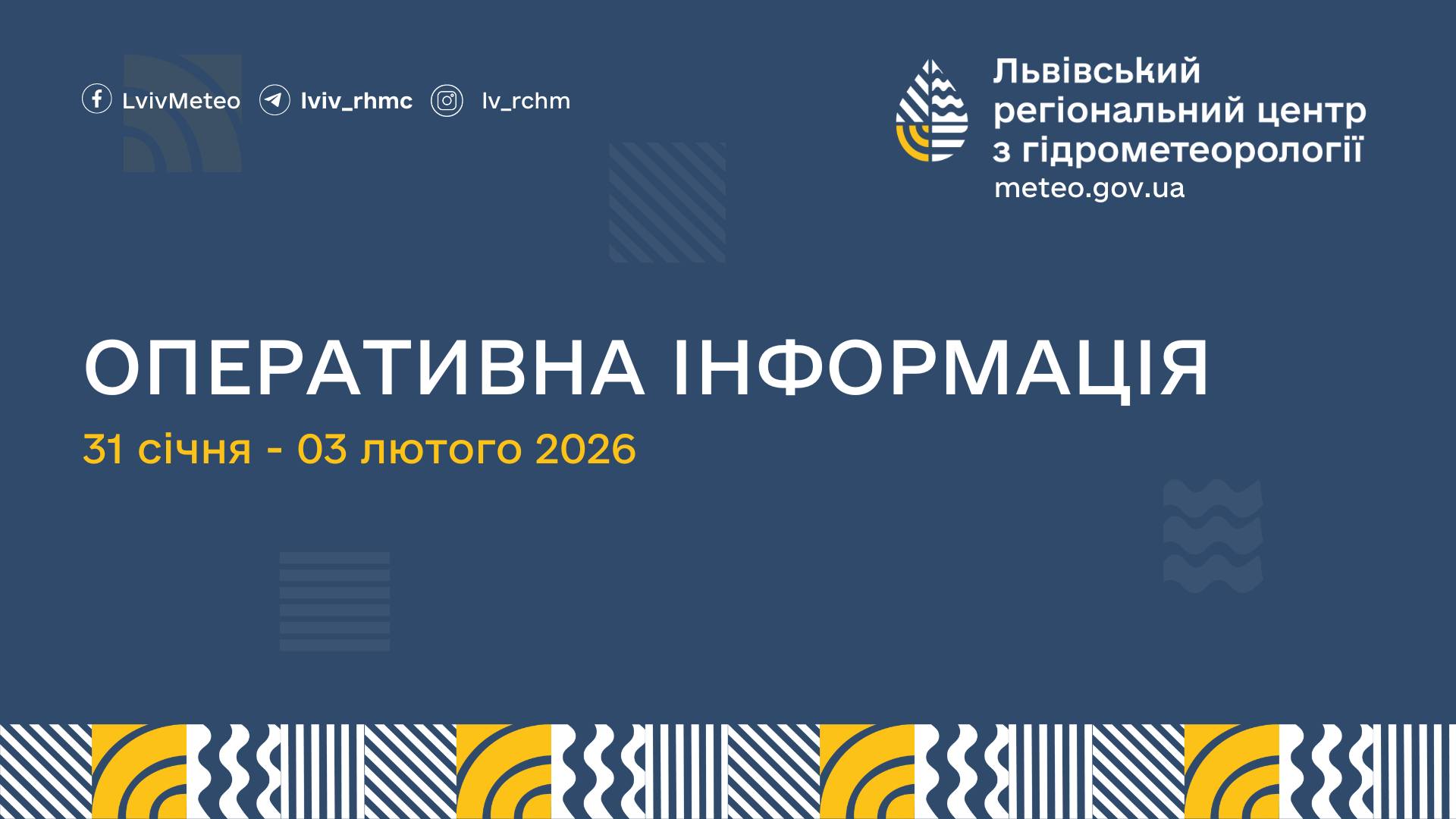 Львівський регіональний центр з гідрометеорології попереджає про ускладнення погодних умов на території Львівщини у період з 31 січня по 03 лютого 2026 року.