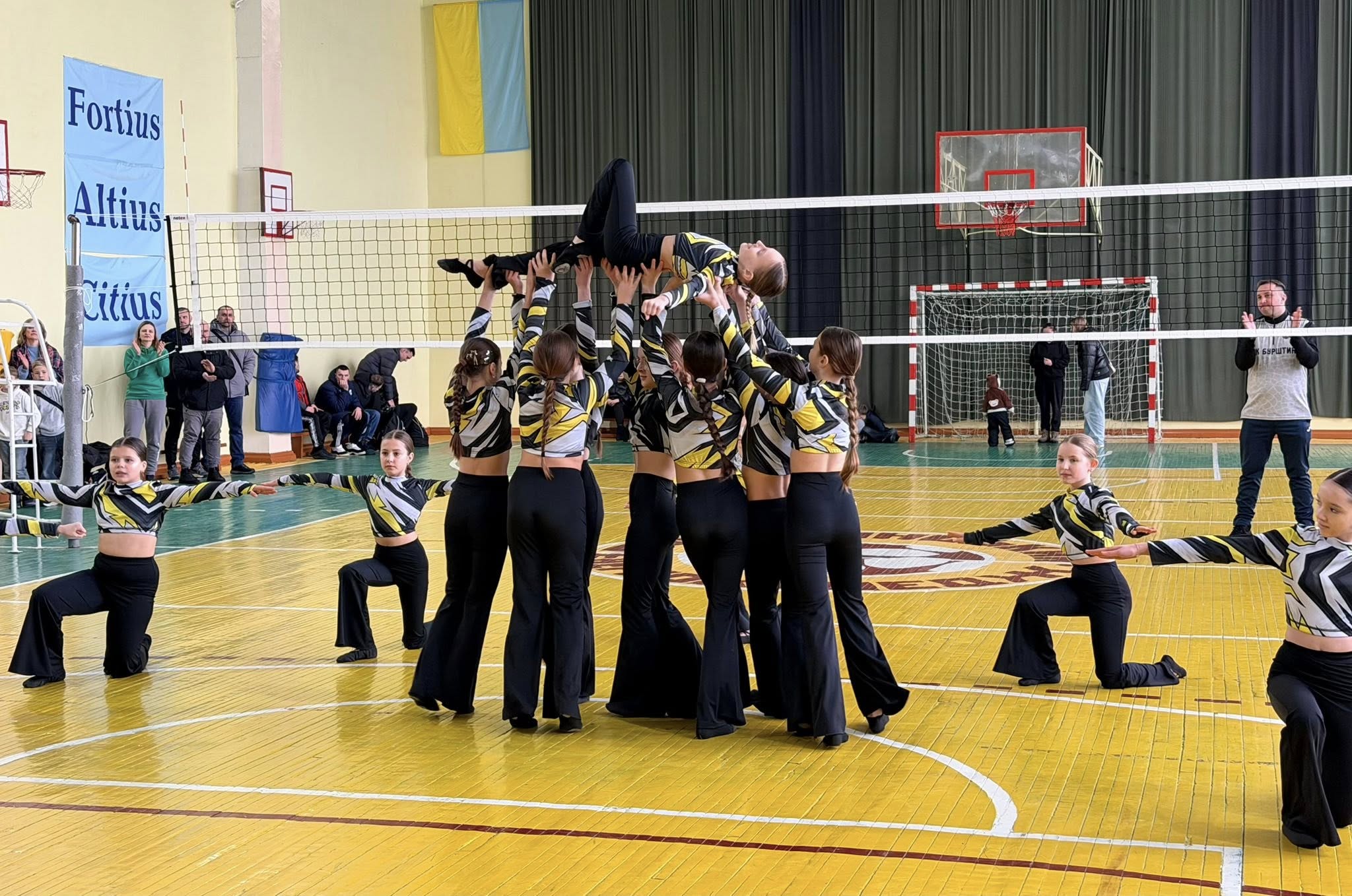 Підтримували спортсменів, які сьогодні змагалися за Кубок області з волейболу і дівчата з танцювальних колективів «Сюрприз» та «Вихор».