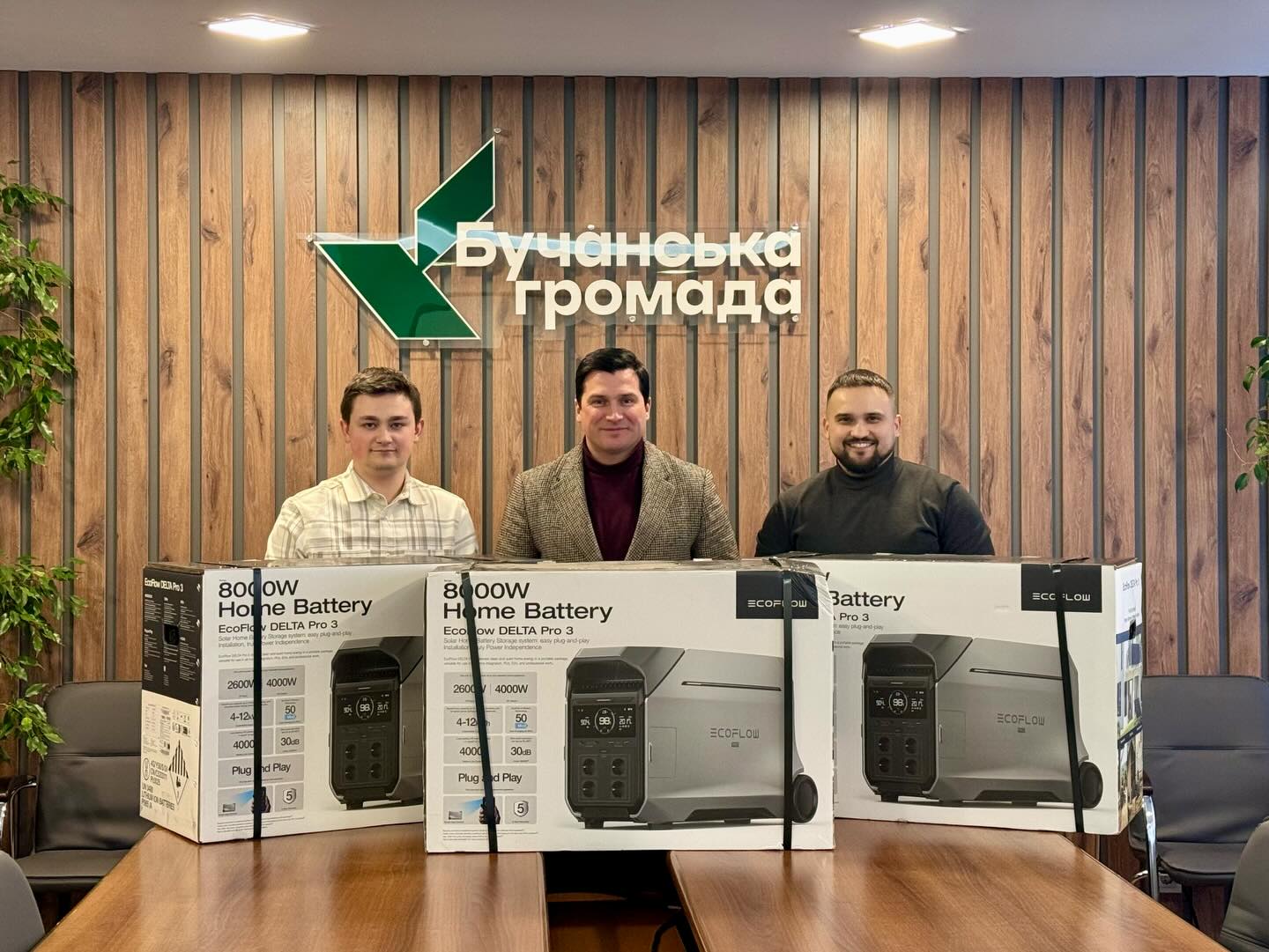 🔌 Бучанська громада отримала три зарядні станції EcoFlow для посилення роботи Пунктів незламності.