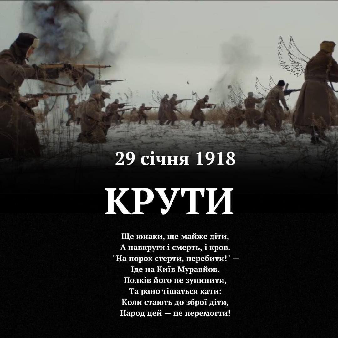 Бій під Крутами (1918) — це символічний подвиг української молоді, що полягав у самопожертві та захисті незалежності УНР, але водночас і національна трагедія, адзначена нерівним боєм з більшовиками, загибеллю молодих героїв та їхнім жорстоким страченням, що стало символом нескореного духу та уроком для майбутніх поколінь, надихаючи на боротьбу за свободу, як у 1918 році, так і пізніше, включаючи сучасні часи.