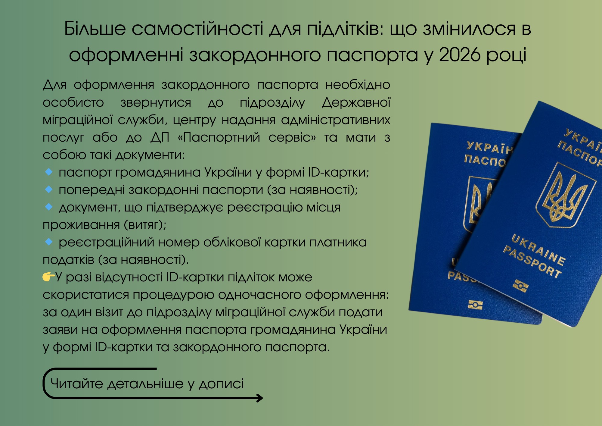 📍Більше самостійності для підлітків: що змінилося в оформленні закордонного паспорта у 2026 році