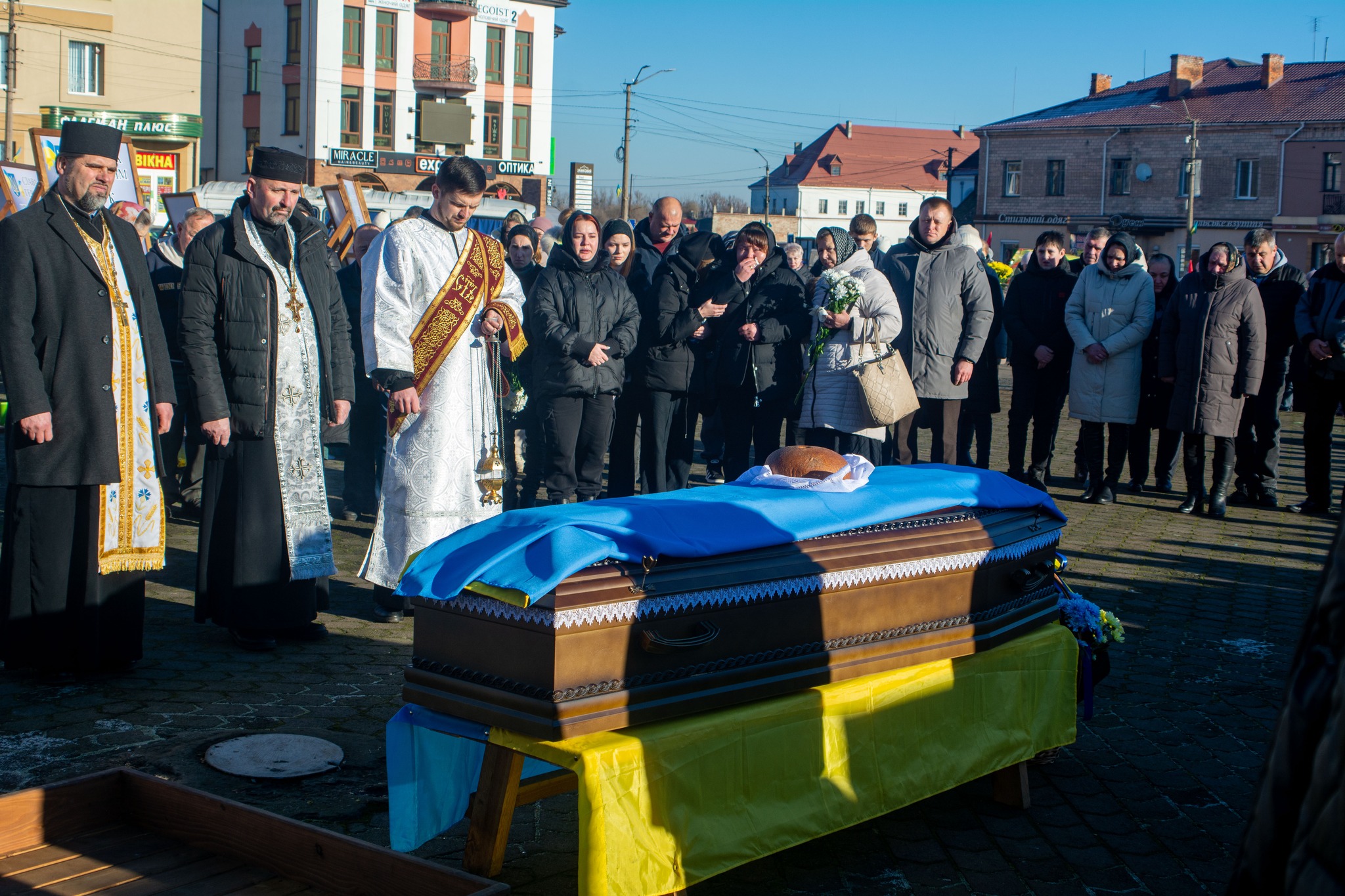 Опісля панахиди траурна процесія вирушила до села Кривуха, де у храмі Св. Івана Богослова було звершено чин похорону полеглого воїна.