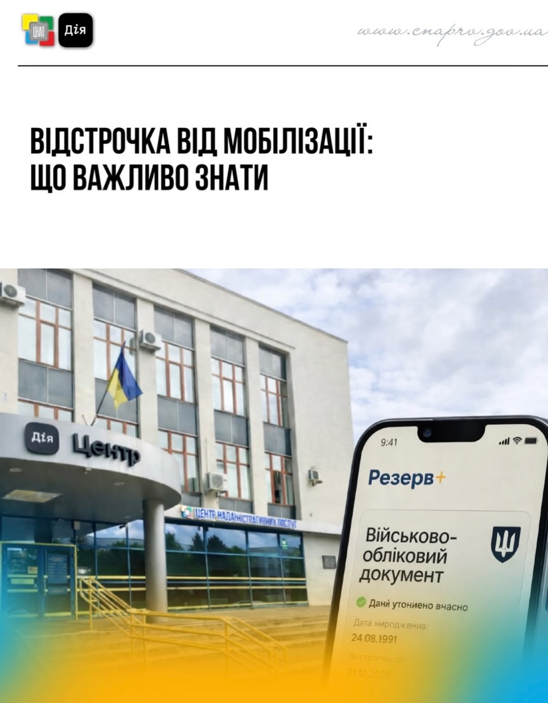 📲 Частину відстрочок можна оформити онлайн в «Резерв+», усі інші — через ЦНАП.