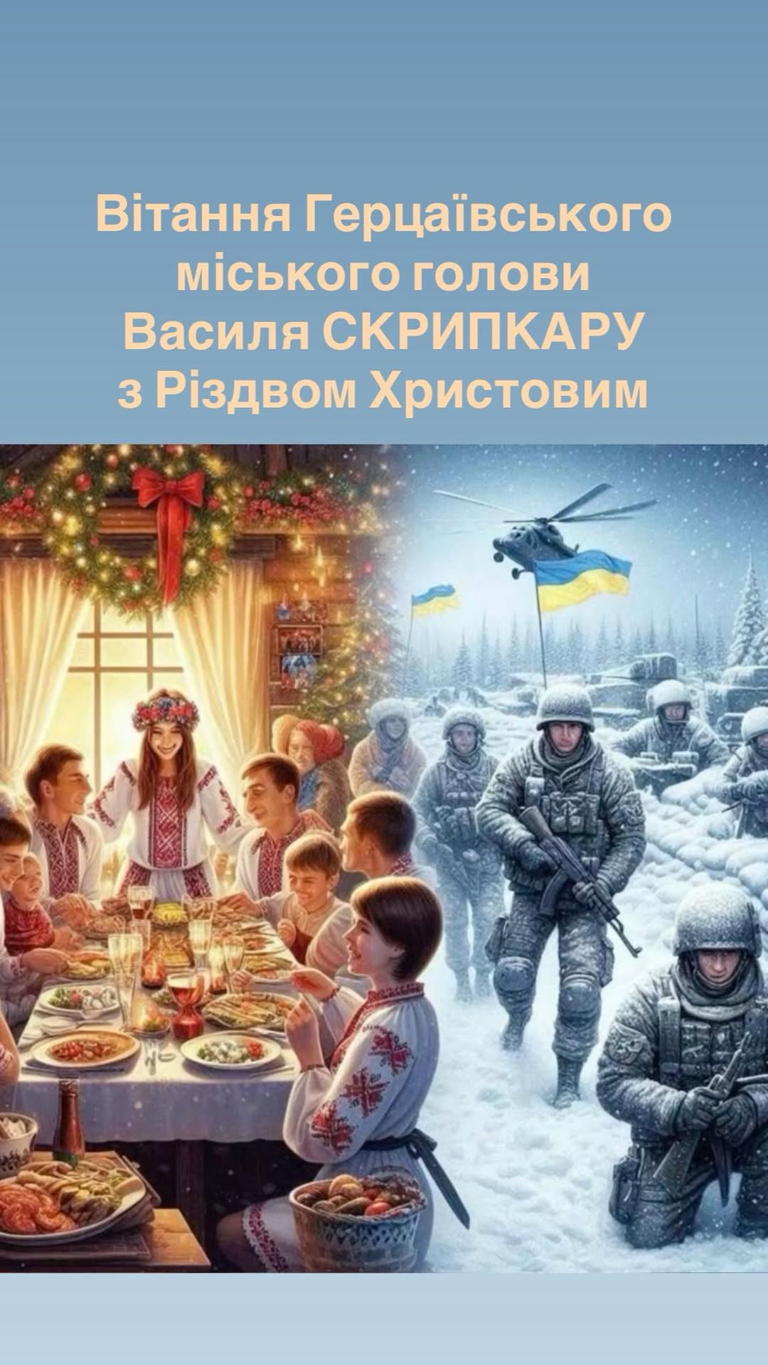 ВІТАННЯ ГЕРЦАЇВСЬКОГО МІСЬКОГО ГОЛОВИ ВАСИЛЯ СКРИПКАРУ З РІЗДВОМ ХРИСТОВИМ