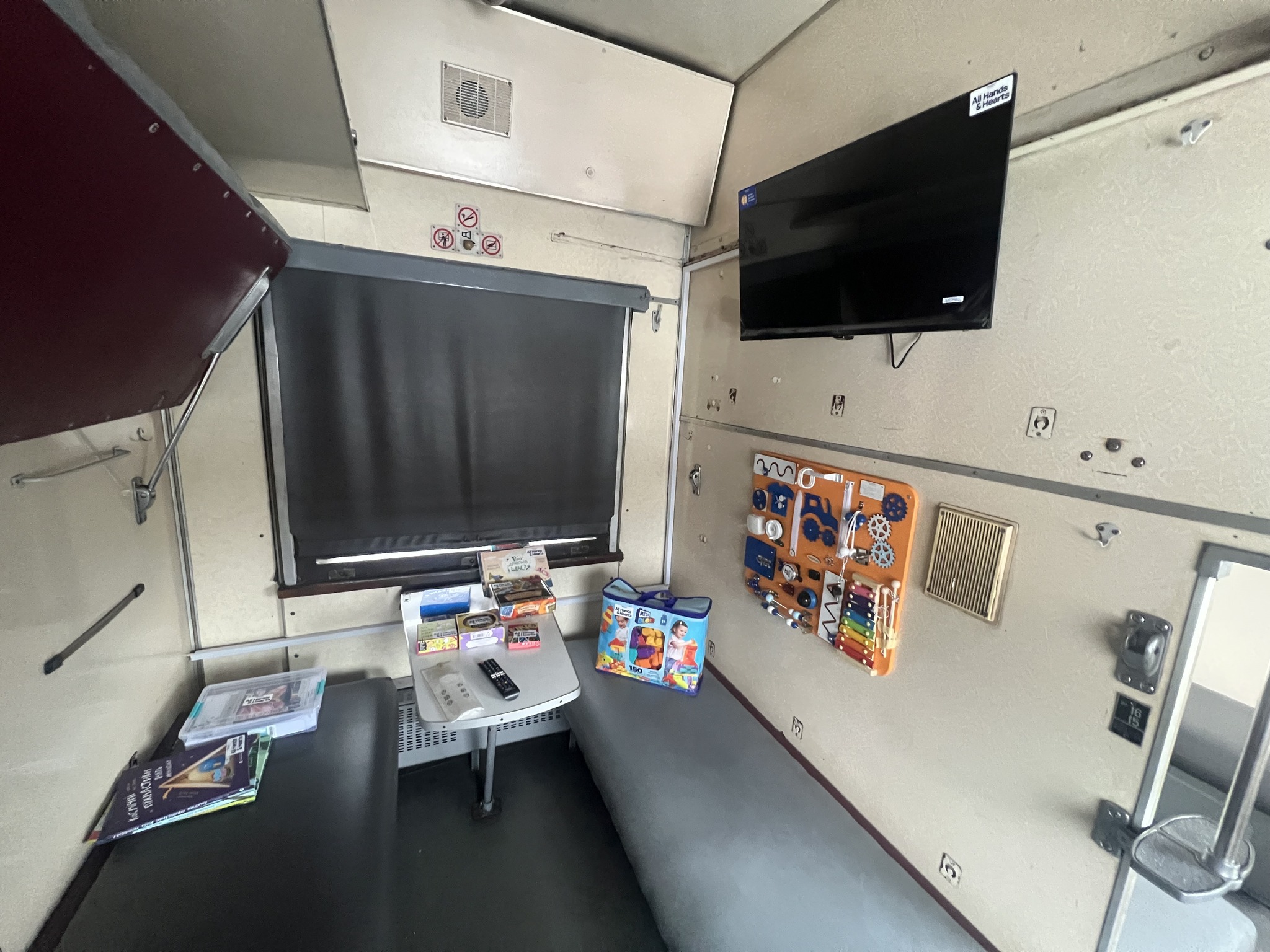 ✔️❗Вагон оснащений генераторами, має запас питної води, аптечки, достатню кількість розеток, засоби зв’язку та доступ до Wi-Fi Starlink. Для дітей передбачені ігрові набори, а також створені умови для перебування з немовлятами.