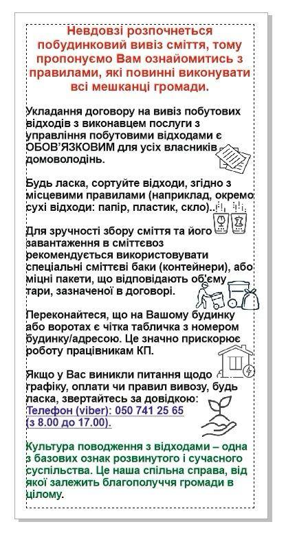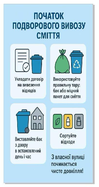 у цей період необхідно придбати контейнер об’ємом до 120 л. для подвірного збору сміття.