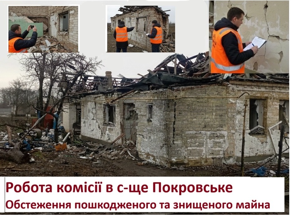 На сьогодні члени комісії проводять обстеження пошкоджених та зруйнованих об’єктів безпосередньо у селищі Покровське. На жаль, на даний момент через безпекову ситуацію залишається фізично неможливим виїзд фахівців у інші села громади (Коломійцівський, Вишнівський, Андріївський та Орлівський старостинські округи).