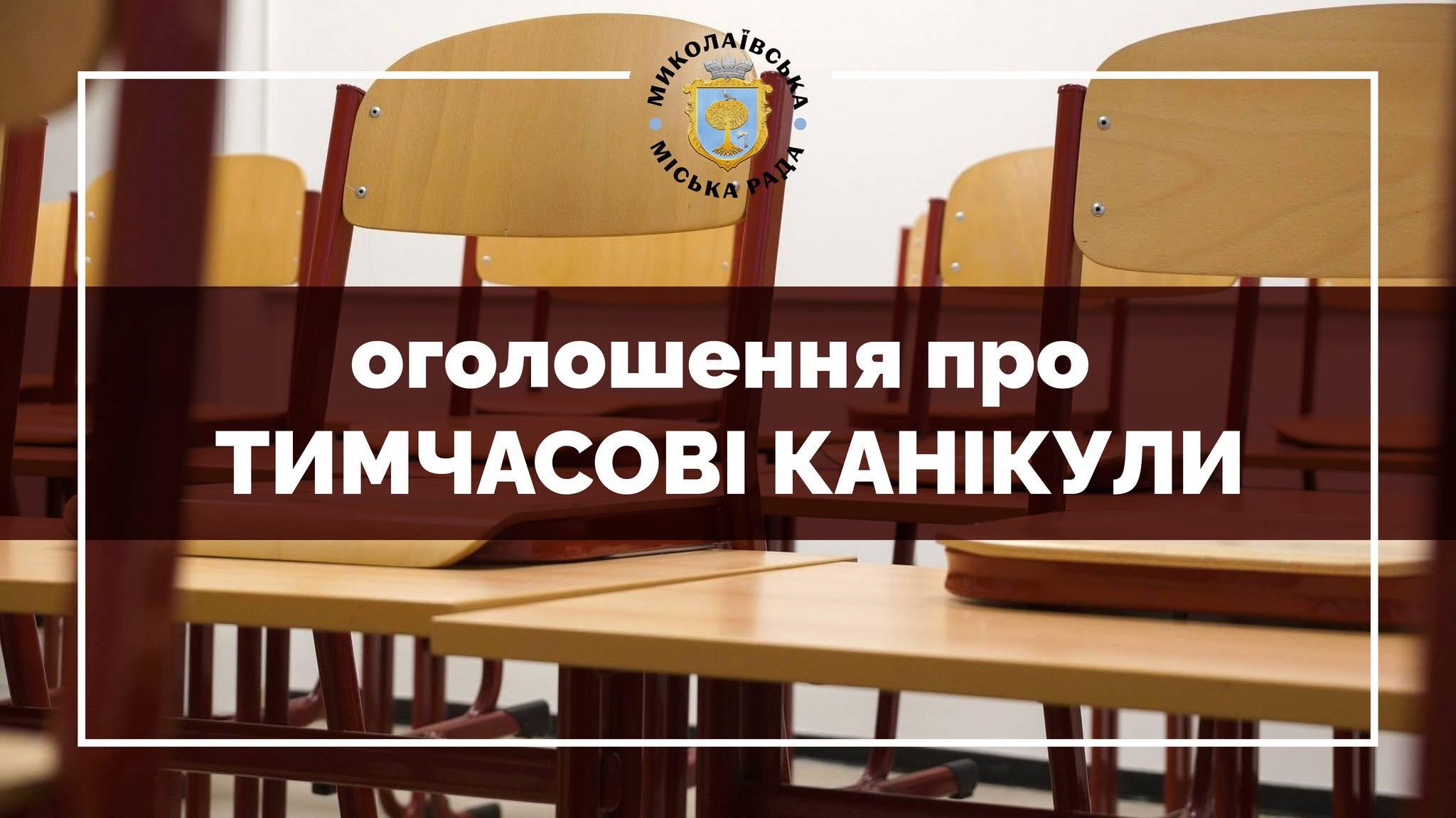 ВАЖЛИВЕ ПОВІДОМЛЕННЯ про запровадження тимчасових канікул у закладах освіти Миколаївської громади.