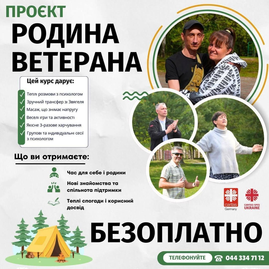 Запрошуємо вас до безкоштовного 10-денного кемпу «Родина Ветерана» від Карітас-Спес Україна – місця, де відновлюються не лише тіло і дух, а й родинні зв’язки.