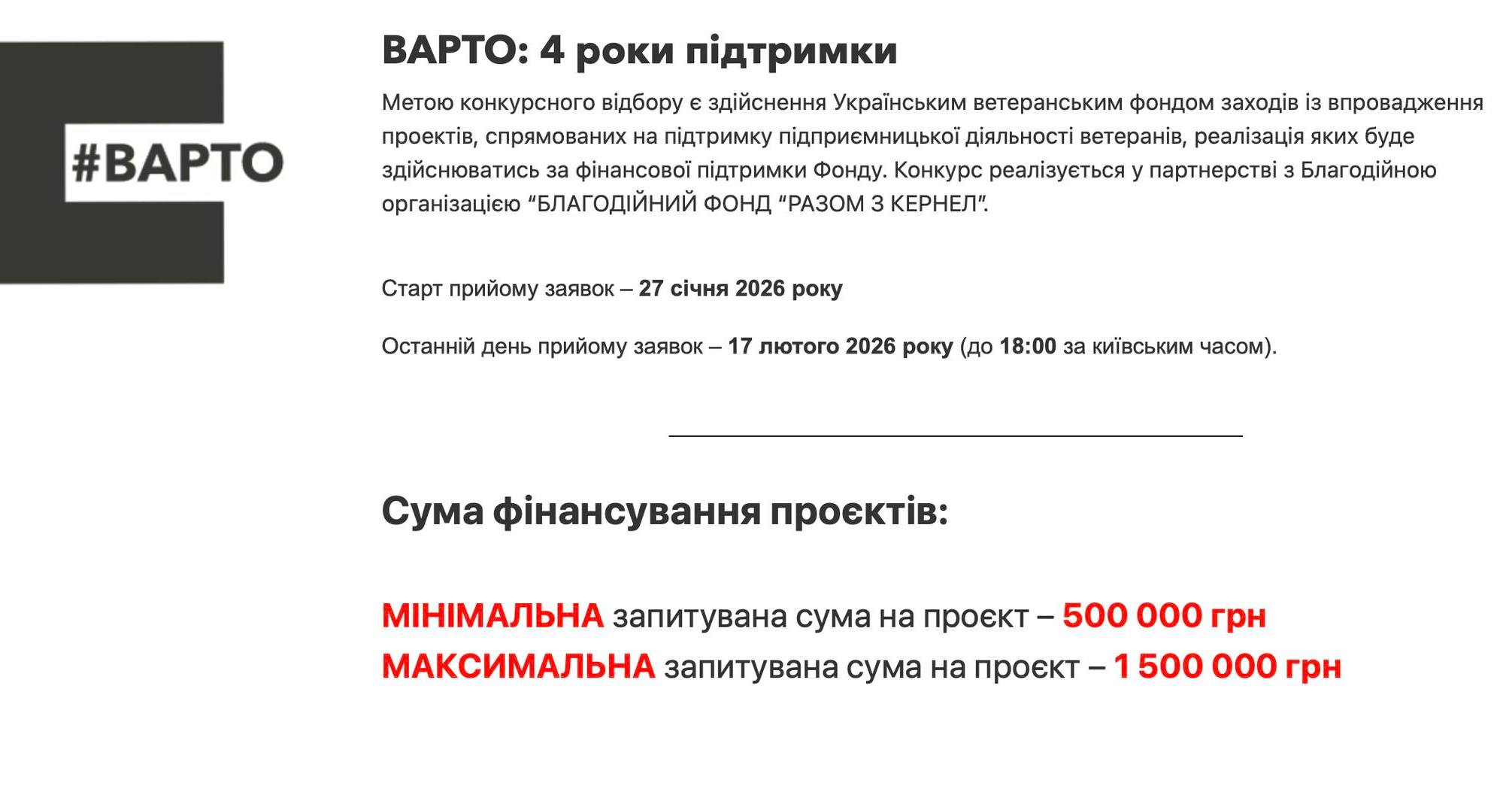 Стартував конкурс грантів для ветеранського бізнесу “ВАРТО:4 роки підтримки”