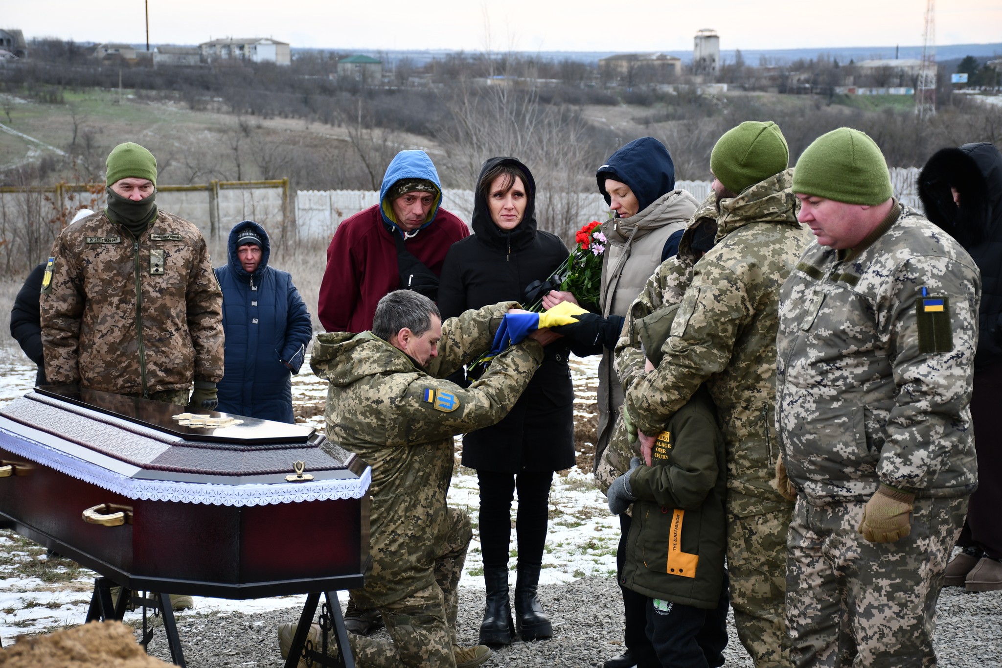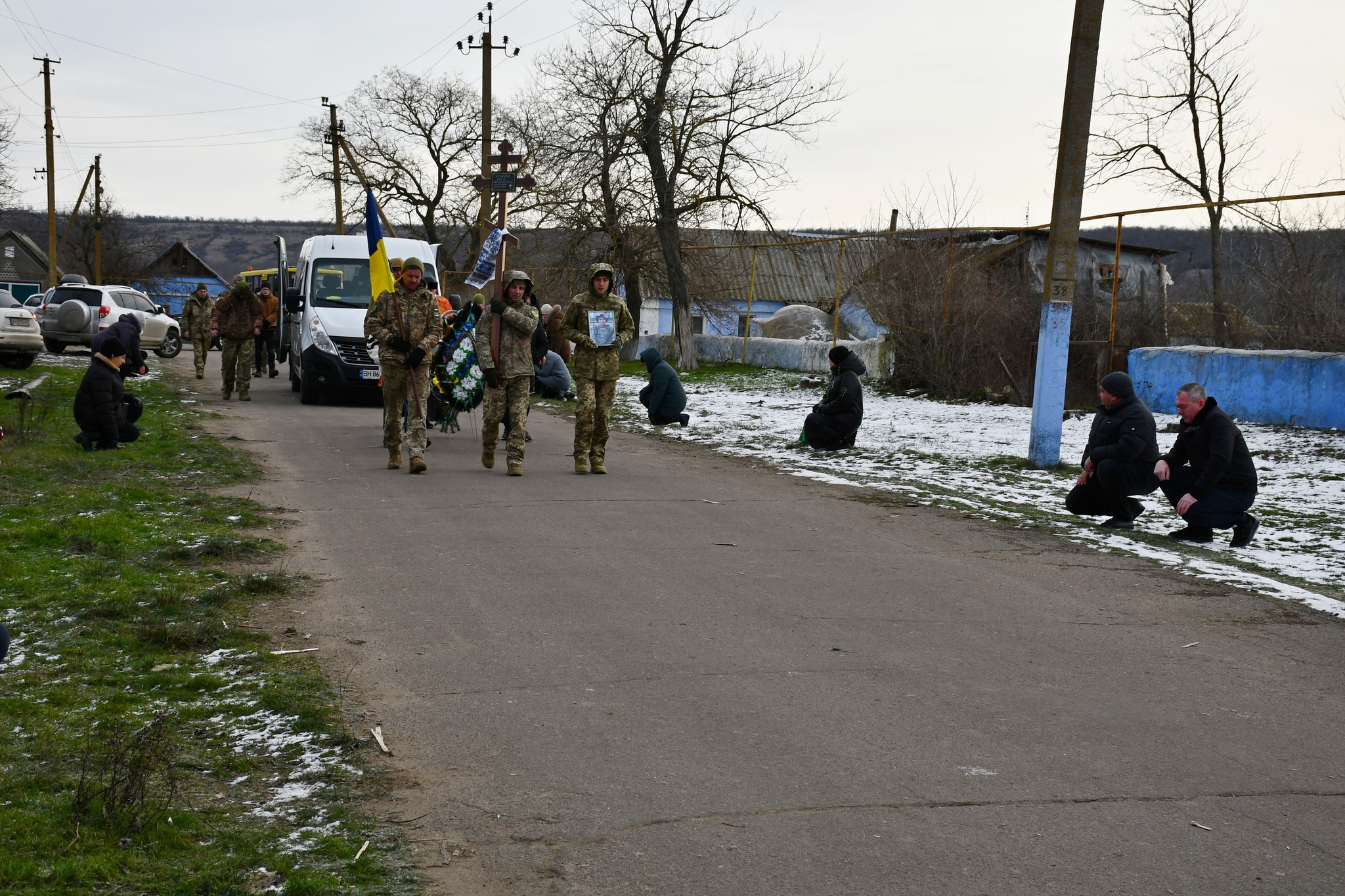 Але, на жаль, сьогодні попрощалися з Юрієм найближчі люди – рідні та близькі, побратими, а також громада, яка прийшла віддати останню шану воїну. Траурний кортеж із тілом загиблого Героя люди зустрічали на колінах.