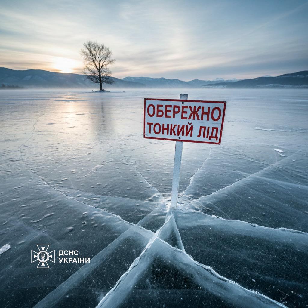 ‼️Нагадуємо: через коливання температури крига на водоймах зараз вкрай нестійка. Вихід на лід за таких умов загрожує життю.