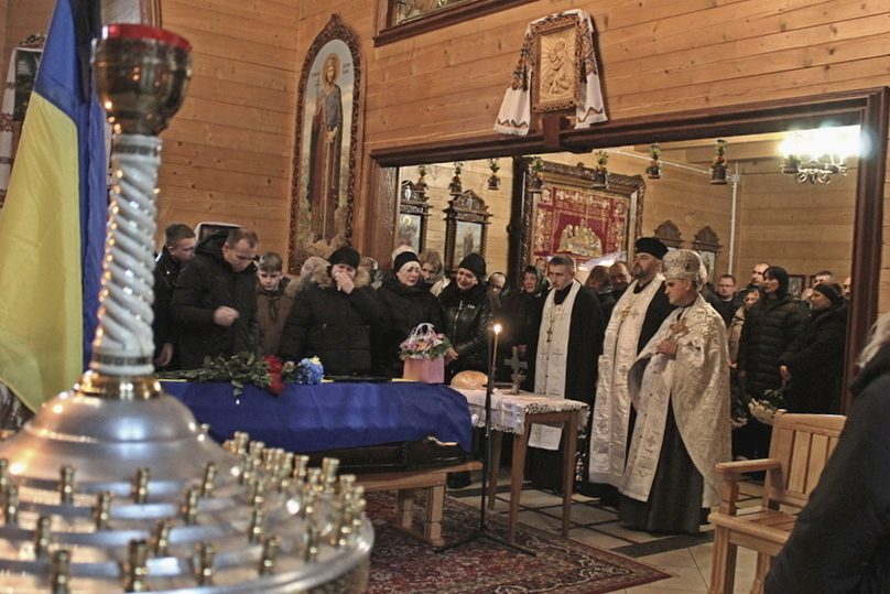 🥀 У храмі Святих Віри, Надії, Любові та їх матері Софії священники відслужили панахиду за упокій душі воїна. Плакали рідні, схиляли коліна близькі, друзі та знайомі, клали квіти до домовини, як останній дарунок та знак шани Герою. Підтримати рідних від міської ради прийшов перший заступник Ярослав Матвійчук.