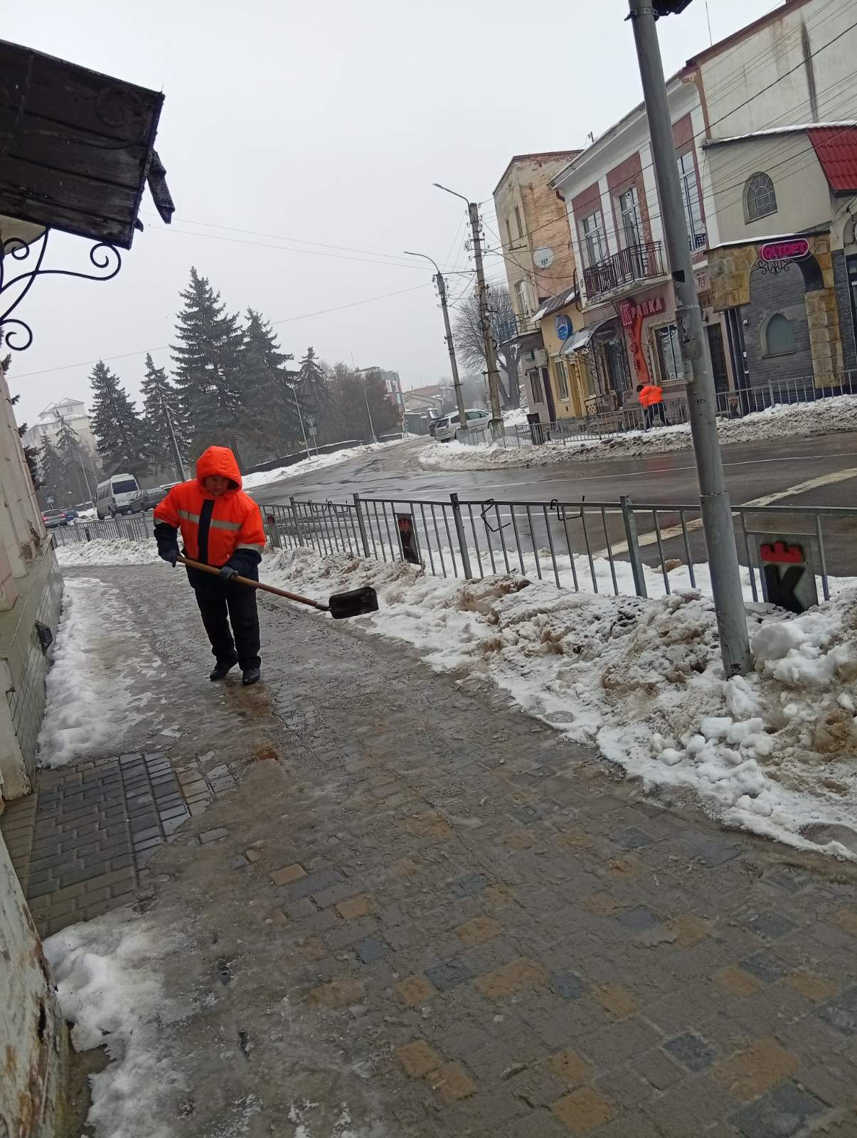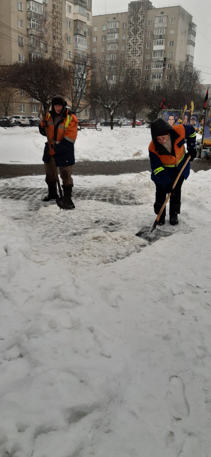 – очистку тротуарів, доріжок від снігу на закріплених територіях та очищення сміттєвих урн по місту.