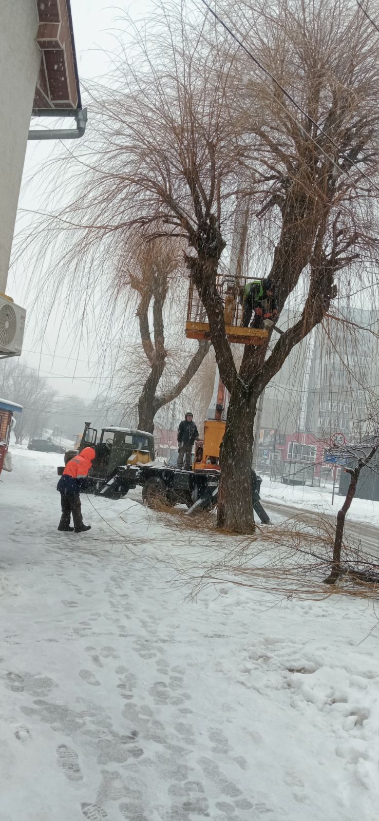 – формувальну обрізку дерев із застосуванням автовишки на вул. Рубчака, вул. Грушевського;