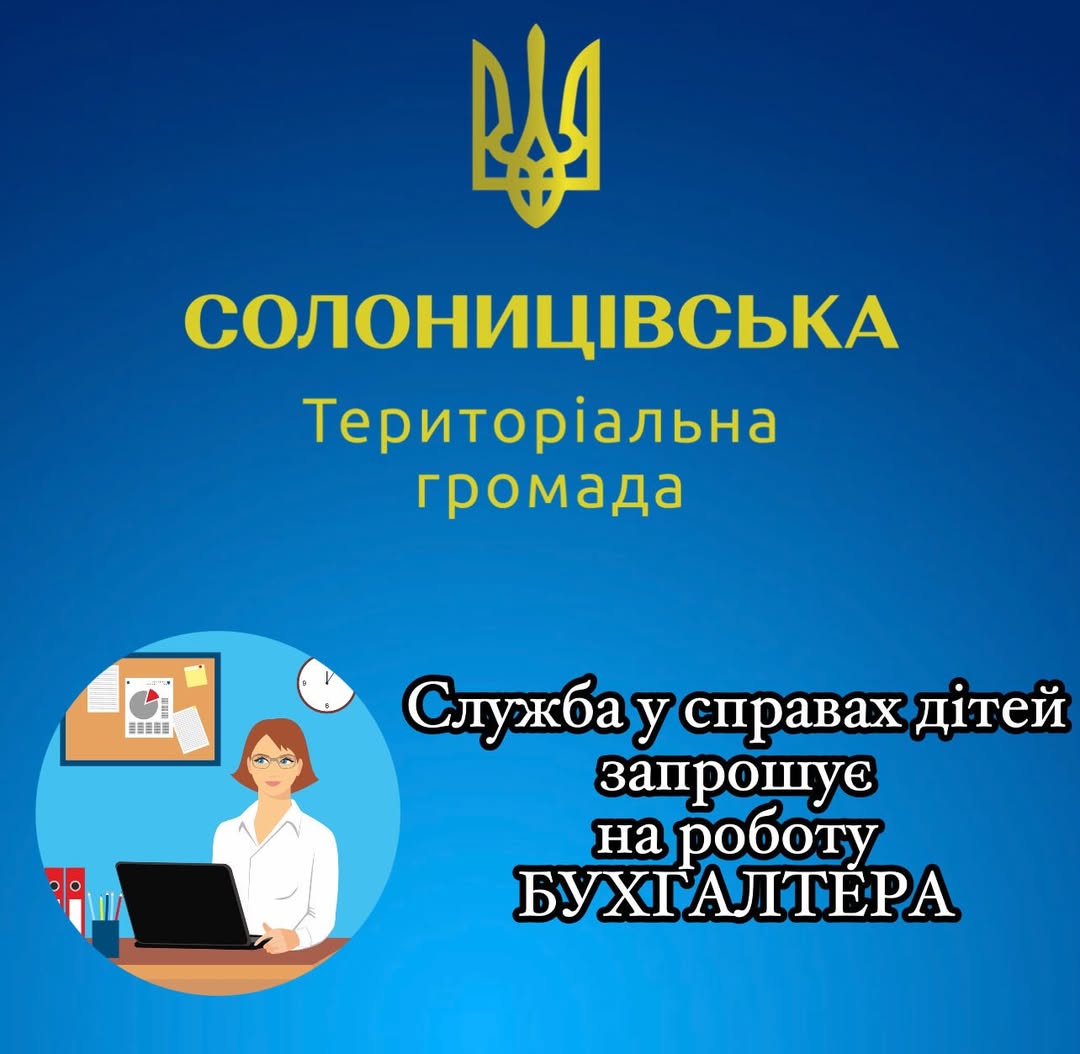 Солоницівська селищна рада запрошує на роботу головного спеціаліста служби у справах дітей (посадова особа органу місцевого самоврядування).