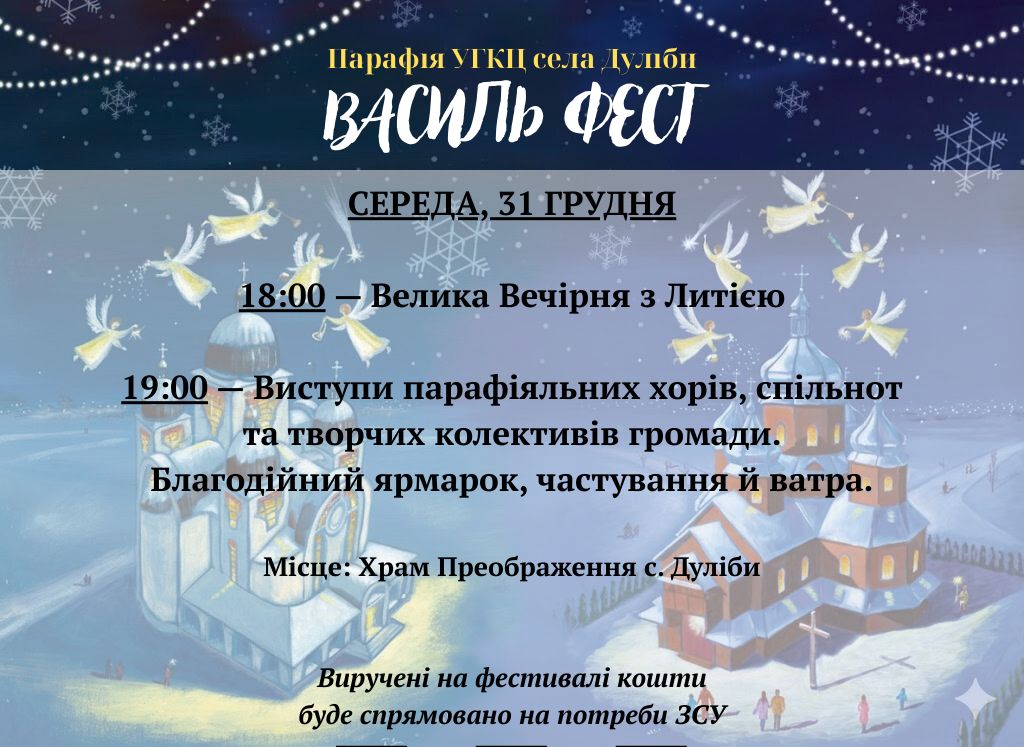 Цей вечір стане часом спільної молитви, прослави новонародженого Спасителя та нашої єдності заради Перемоги. Приходьте цілими родинами, щоб разом подякувати Богові за прожитий рік і розпочати новий з вірою та надією.