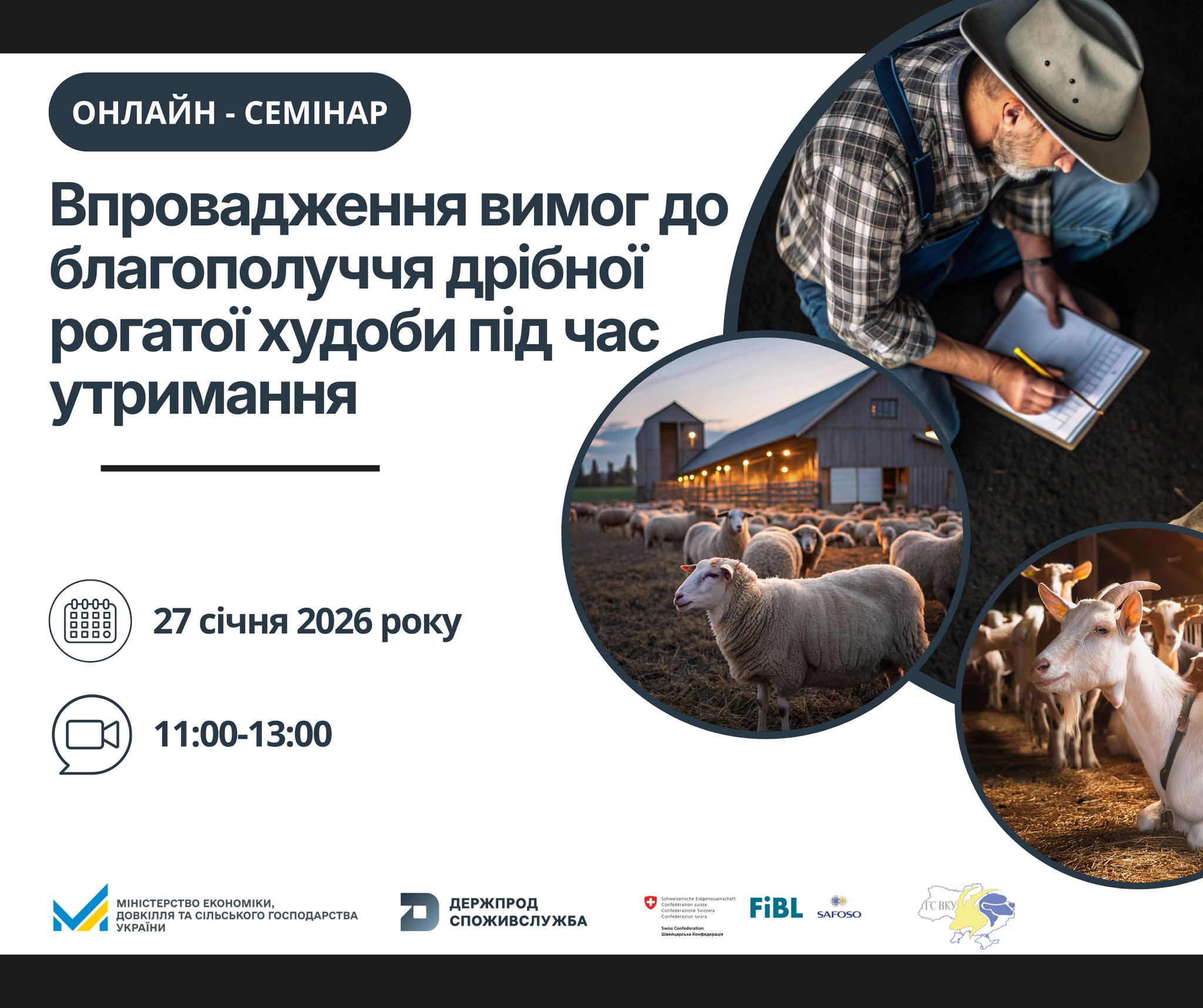 З метою підтримки операторів ринку в умовах дії нових правил проводиться тематичний онлайн-семінар, присвячений практичним аспектам упровадження вимог щодо благополуччя дрібної рогатої худоби.