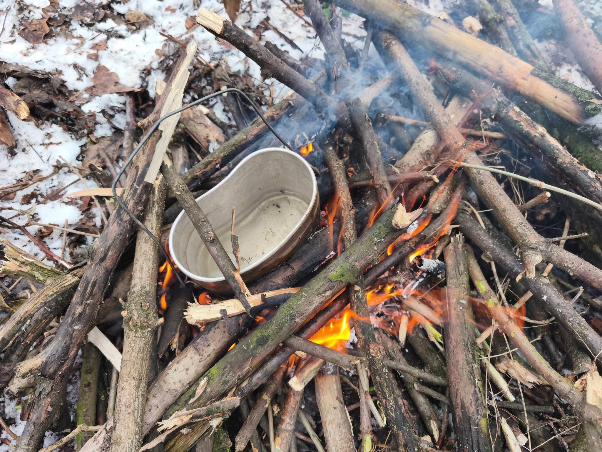 Завданням було розпалити вогнище, зварити яйце та запекти м’ясо.
