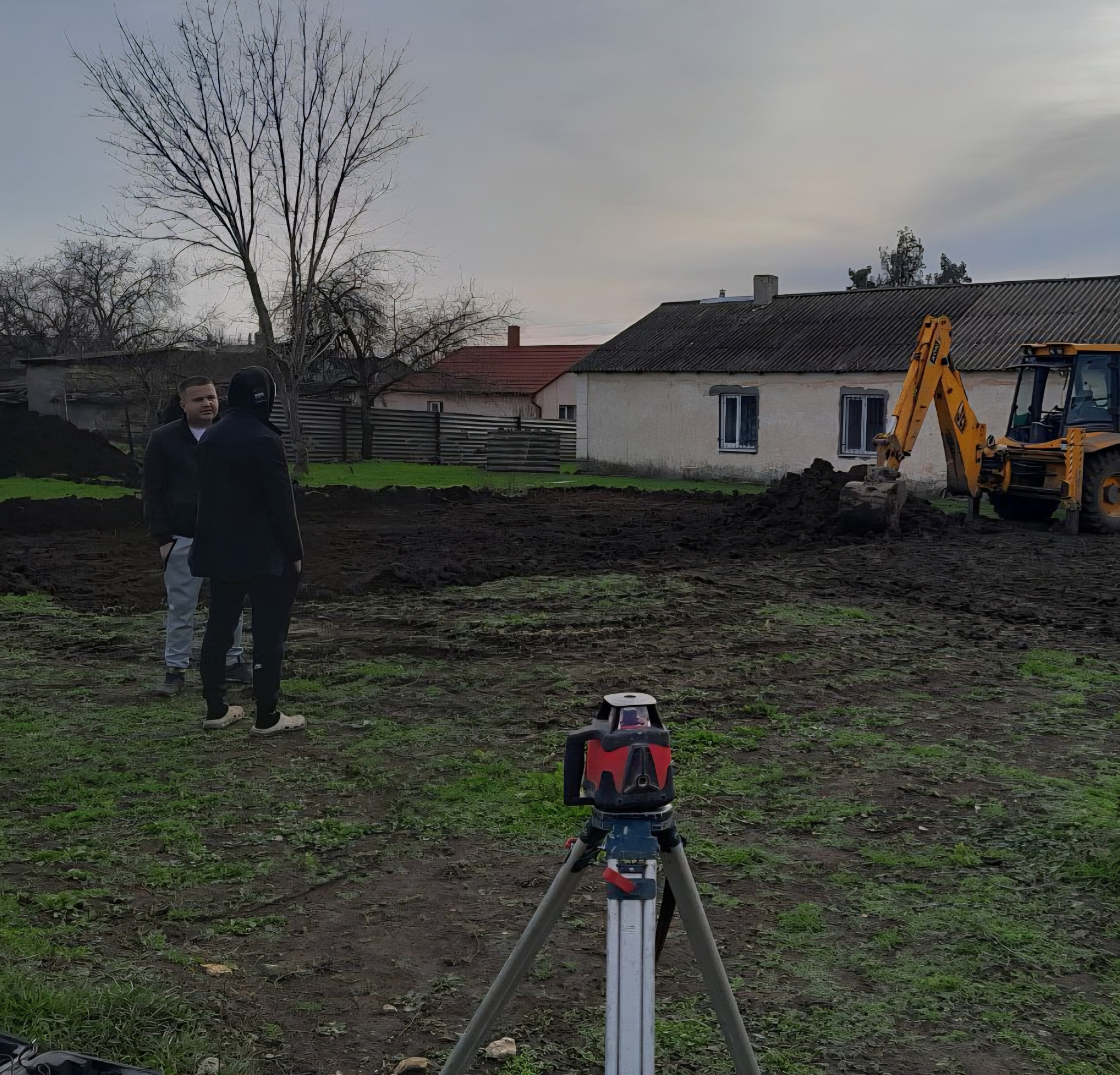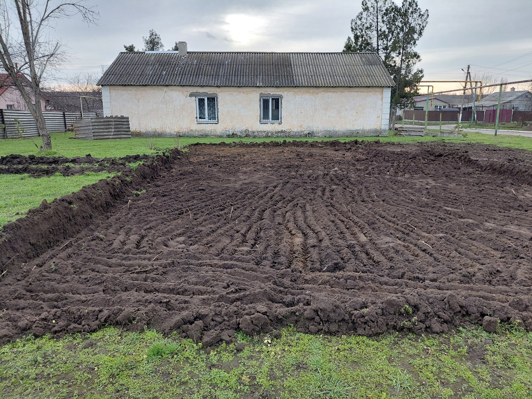 ✅спеціальна техніка проводить вирівнювання території під майбутній фундамент;