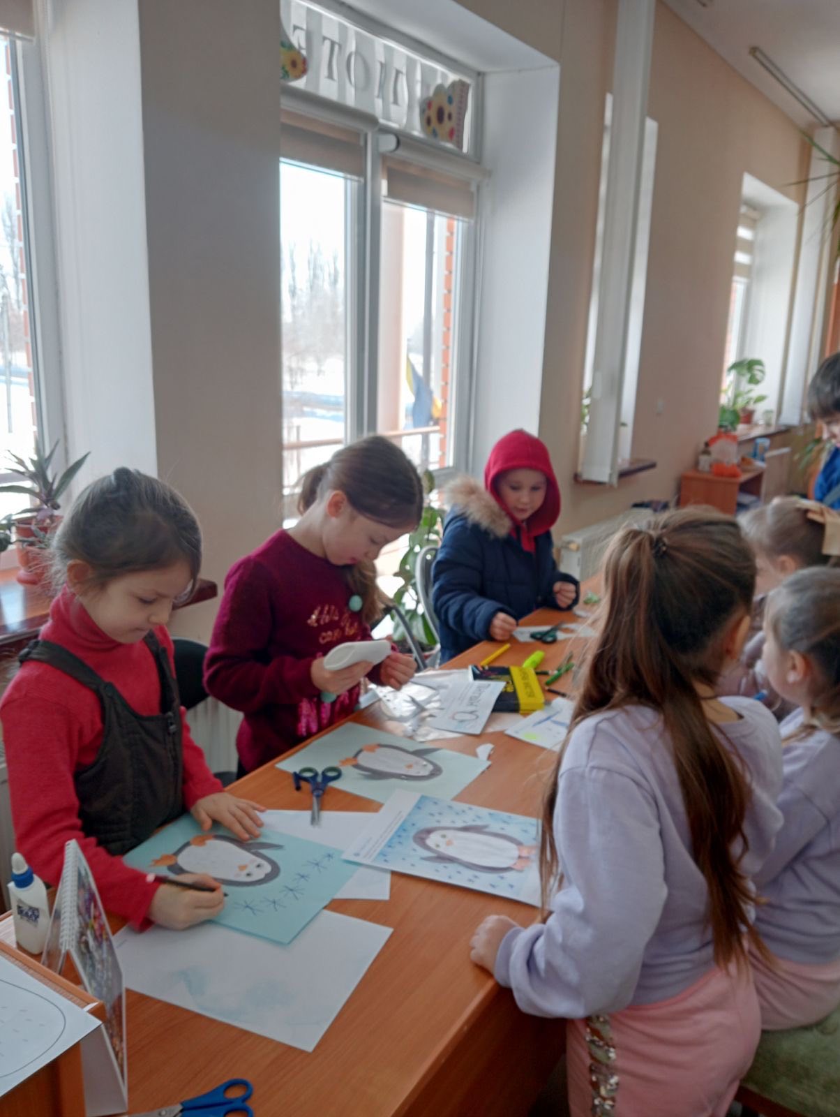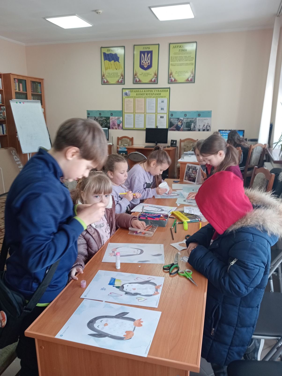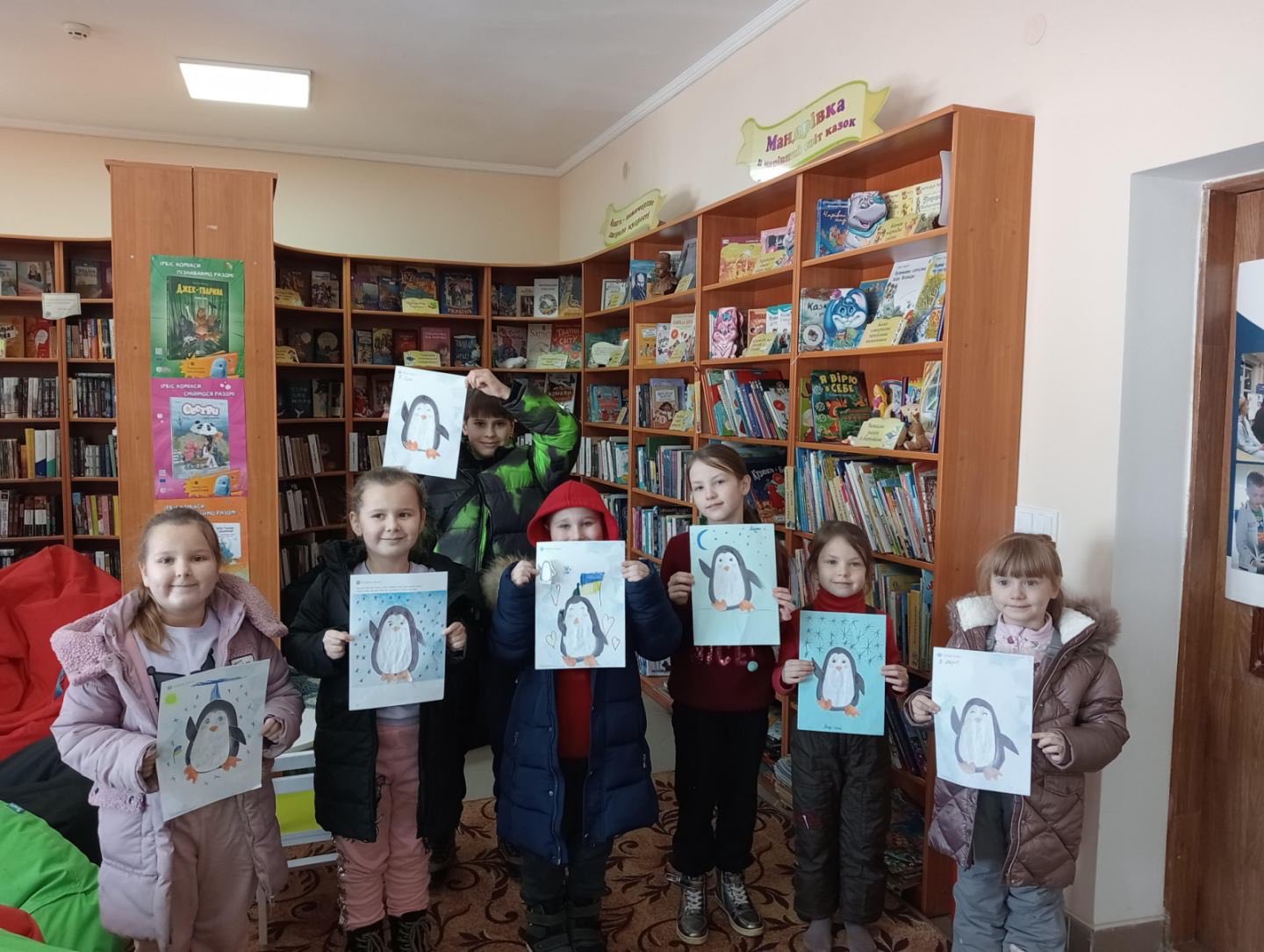 «Веселі пінгвіни»: пізнавально-творча година у бібліотеці села Боратин Вчора, …
