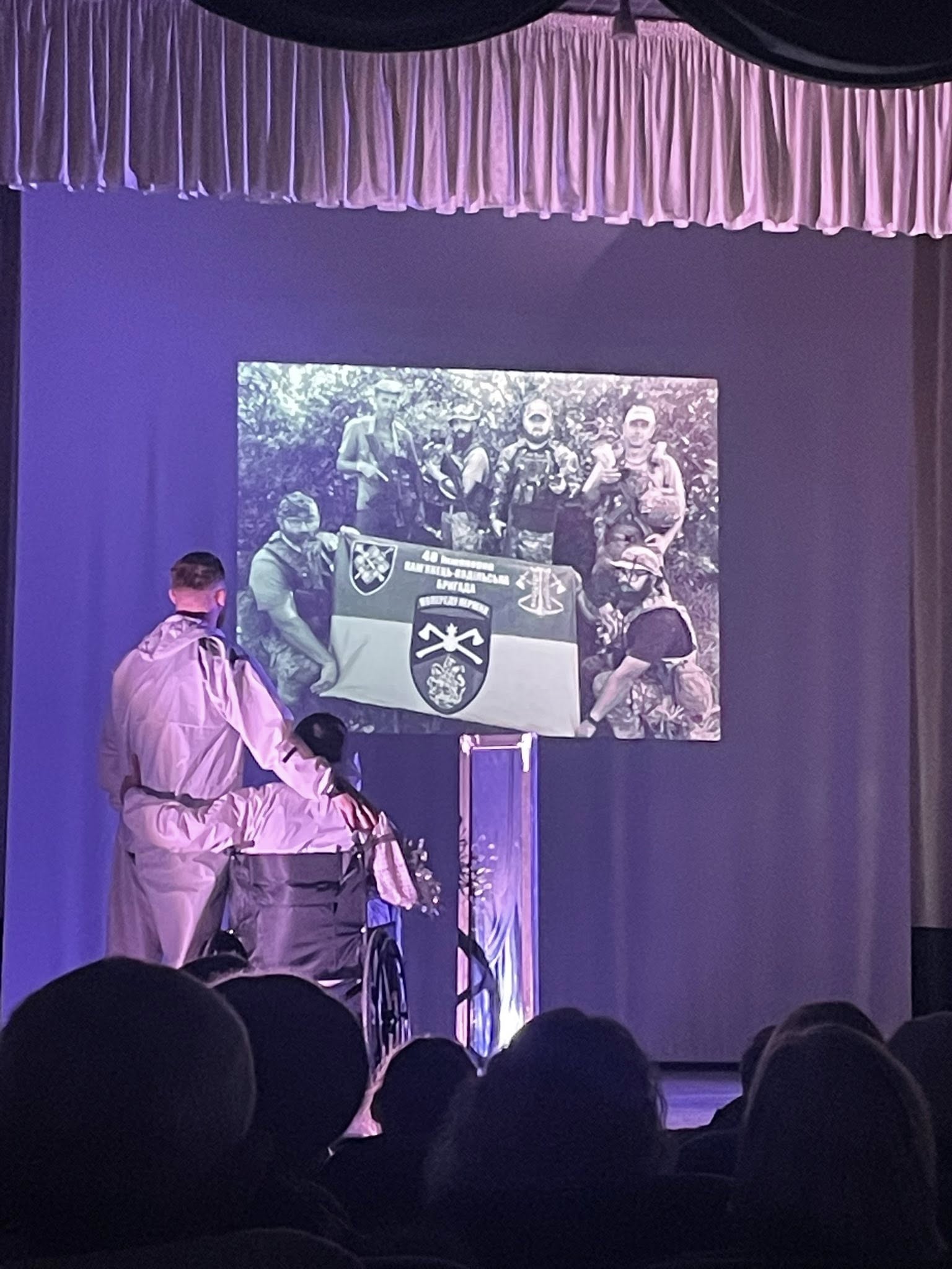 Ветеранська вистава «САМ НА САМ» на сцені Народного дому у Славську. Ця історія про силу духу, що загартована вогнем.