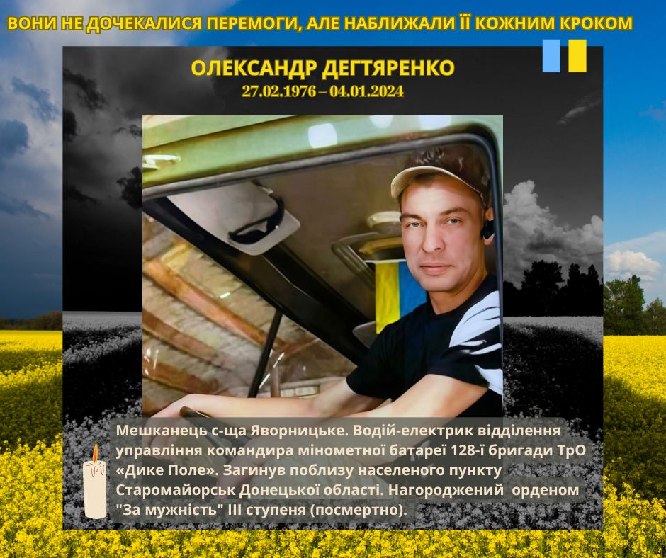 🕯️Дякуємо воїну за чин! Нехай буде вічною памʼять про Олександра Дегтяренка та його подвиг! 🇺🇦