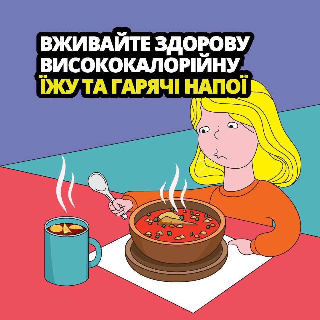 👍 Вживайте здорову висококалорійну їжу та гарячі напої.