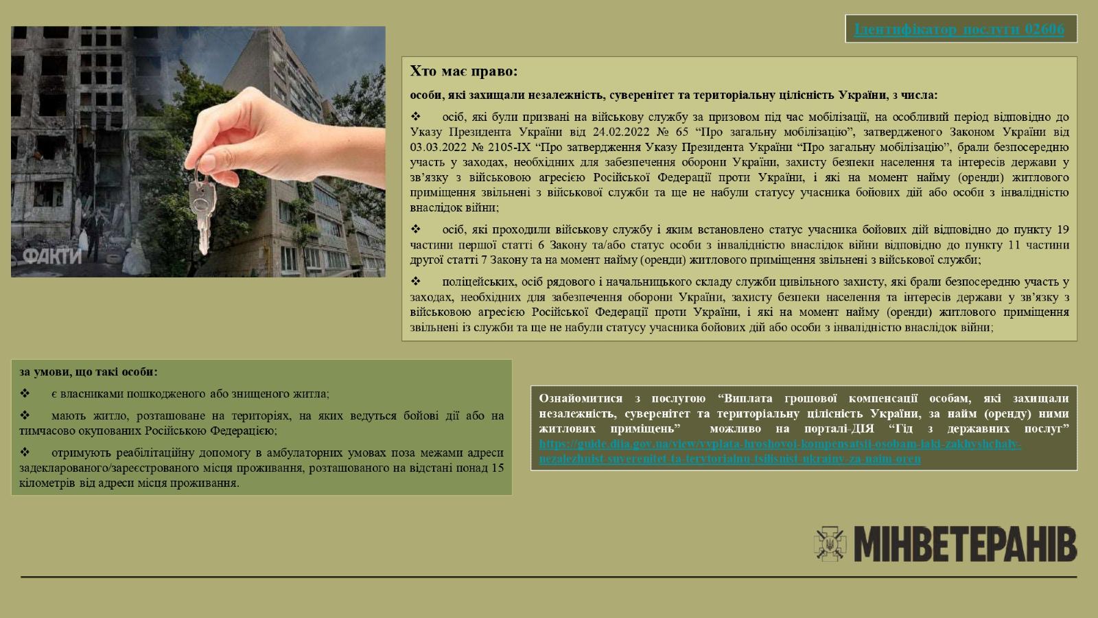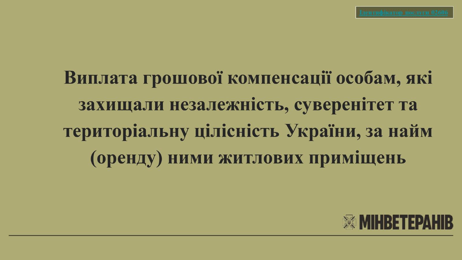 Виплата грошової компенсації особам, які захищали незалежність, суверенітет та територіальну цілісність України, за найм (оренду) ними житлових приміщень