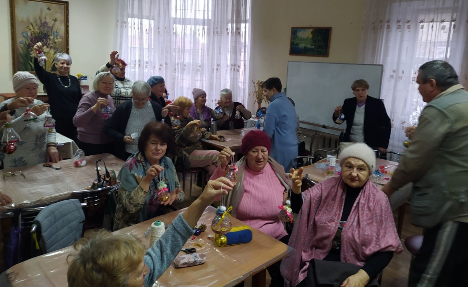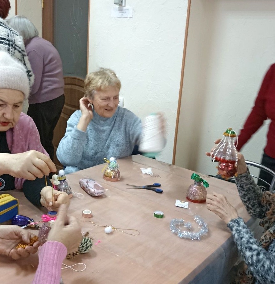 В рамках соціальної адаптації у арт-терапевтичній майстерні територіального центру соціального обслуговування протягом передсвяткового періоду була проведена серія творчих занять. Люди поважного віку з захопленням виготовляли різдвяні та новорічні прикраси з різних матеріалів. Кожна робота відзначалася індивідуальністю, щирістю та теплом, вкладеним у процес її створення. Завершальним етапом стала організація та оформлення виставки цих робот.