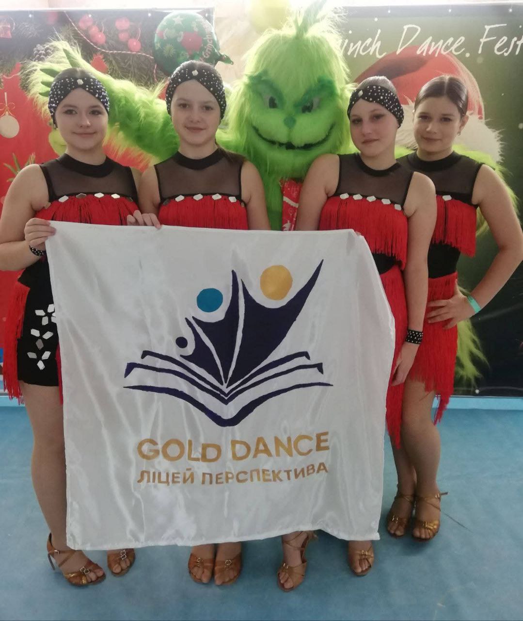 Вихованці гуртка хореографії «Gold Dance» КЗ Ліцей «Перспектива» гідно представили свій заклад на Всеукраїнському фестивалі «GRINCH DANCE FEST», що відбувся у місті Кременчук, виборовши почесні 1 та 2 місця.