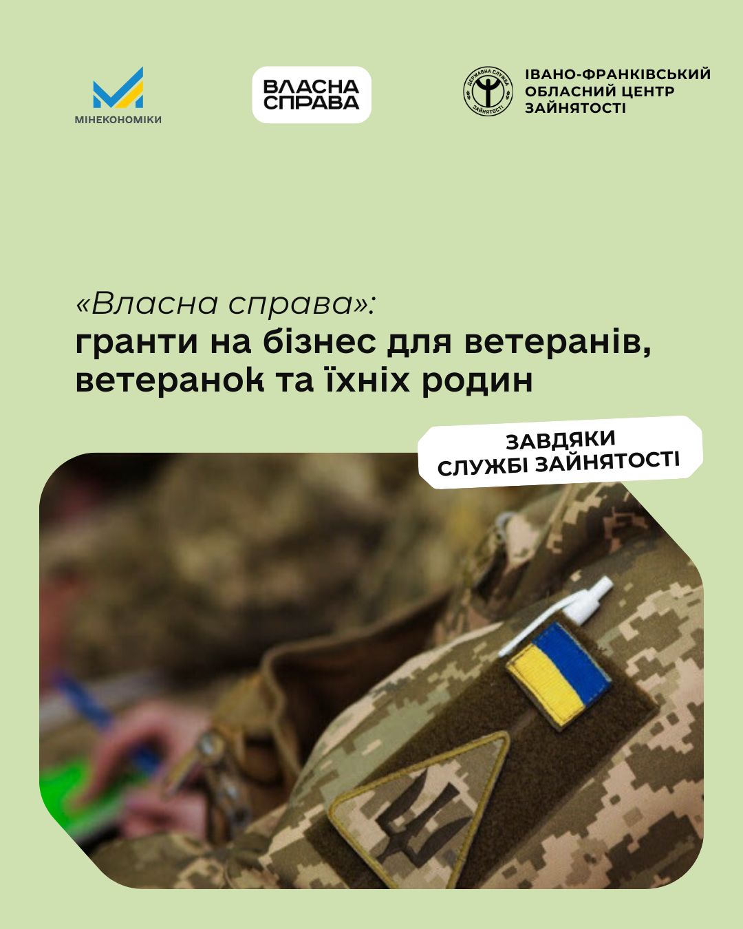 В Україні діють грантові програми підтримки ветеранського бізнесу. У Івано-Франківській області від початку року вже 127 учасників бойових дій та членів їхніх родин отримали гранти на відкриття або розвиток власного бізнесу. Серед отримувачів гранту 69 учасників бойових дій та 58 дружин ветеранів. Завдяки цим проєктам на Івано-Франківщині буде створено 243 нових робочих місць у різних галузях економіки.