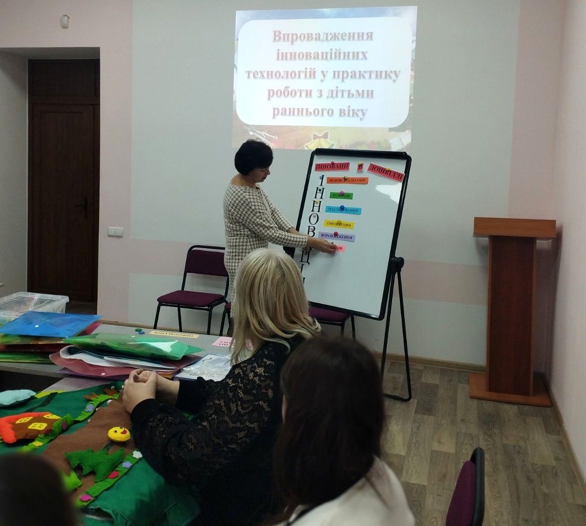 Керівник спільноти, вихователь-методист ЗДО №5 «Казка» Любов Якимова презентувала матеріали «Впровадження інноваційних технологій у практику роботи з дітьми раннього віку». Метою презентації було поглиблення знань про інноваційні технології, обмін досвідом із їх використання, обґрунтування доцільності впровадження інновацій в освітній процес, аналіз готовності та підвищення компетентності педагога з даного питання. Детально розглянули алгоритм роботи фахівців під час використання інновацій з дітьми раннього віку, які дозволяють забезпечити якісний освітній процес. Керівник зазначила, що застосування інновацій свідчить про відповідність ЗДО сучасним освітнім стандартам і потребам суспільства. Інноваційні платформи дозволяють легко адаптувати навчальні завдання під рівень розвитку та особливі освітні потреби кожної дитини.