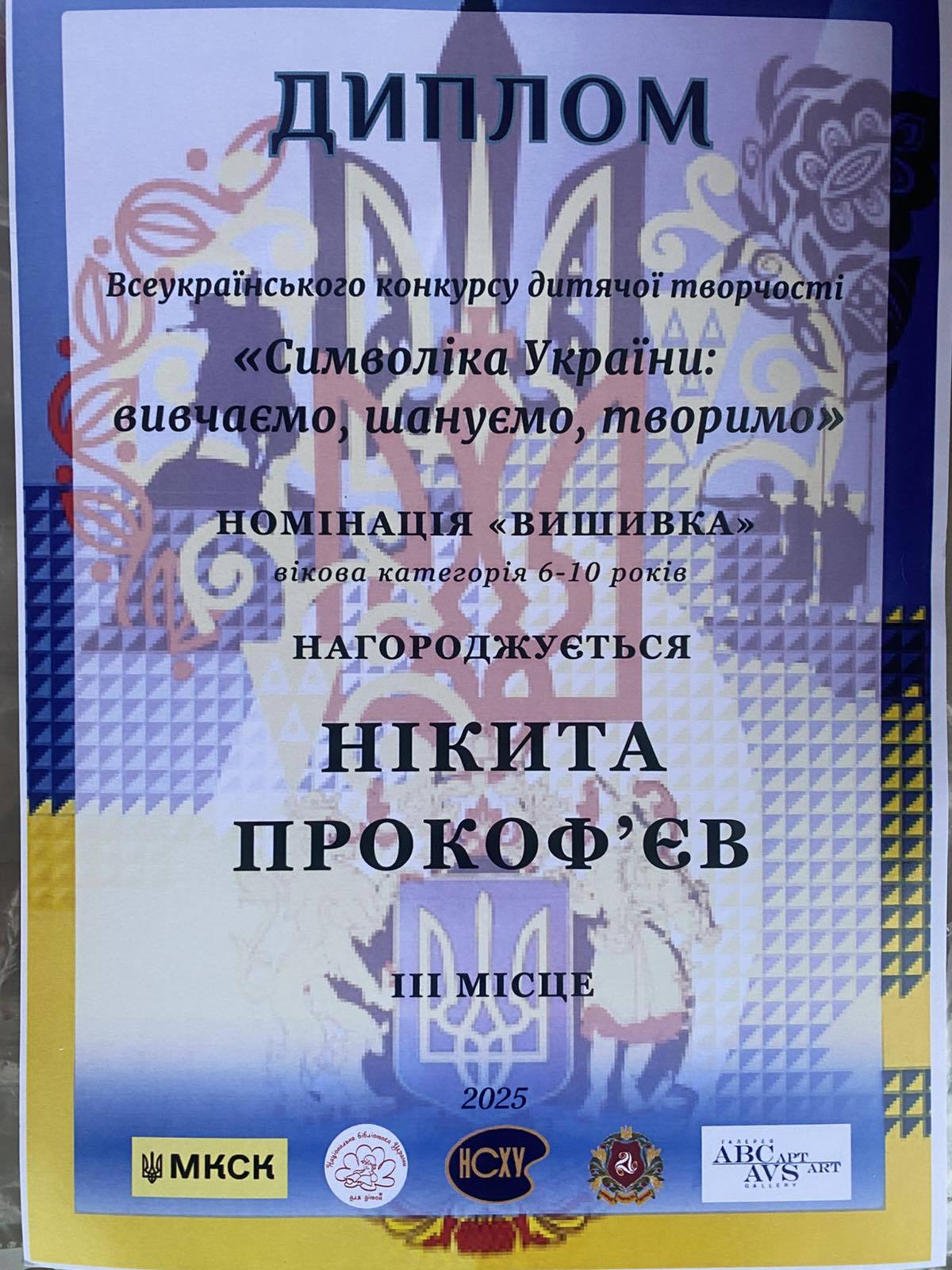 Вітаємо нашого талановитого учня 3 класу Нікиту Прокоф’єва з чудовим досягненням — III місце у всеукраїнському конкурсі! 🎉🇺🇦