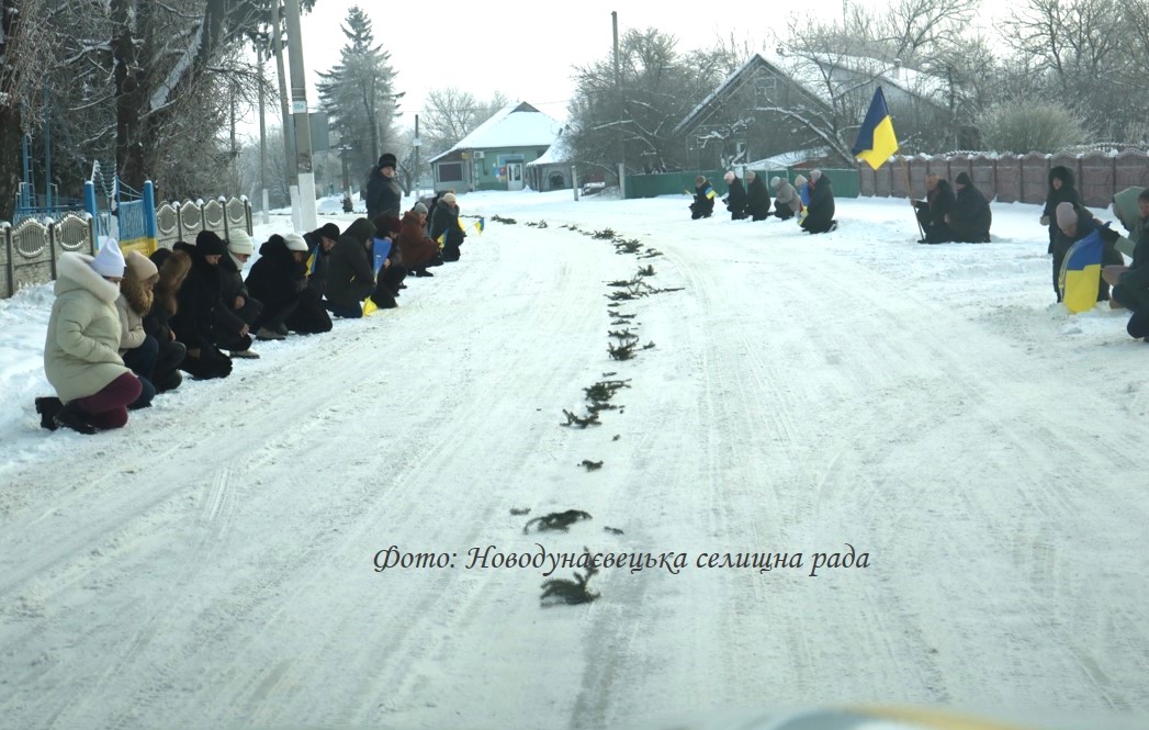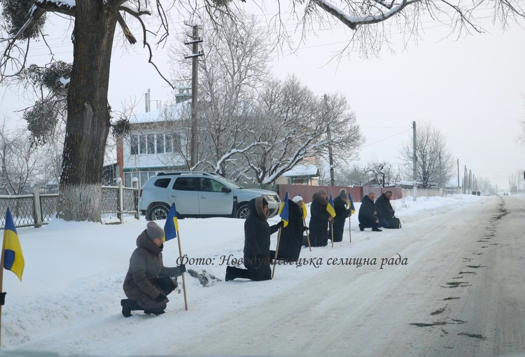 Знову люди із синьо – жовтими прапорами у руках, на колінах, схиливши голови в скорботі зустрічали нашого полеглого Захисника. Знайомі, побратими, рідні та близькі ОЛЕКСАНДРА прийшли віддати йому останню шану… Останній раз, неквапливо, повільно кортеж із нашим Захисником проїхав дорогою, якою ОЛЕКСАНДР щоденно проходив…