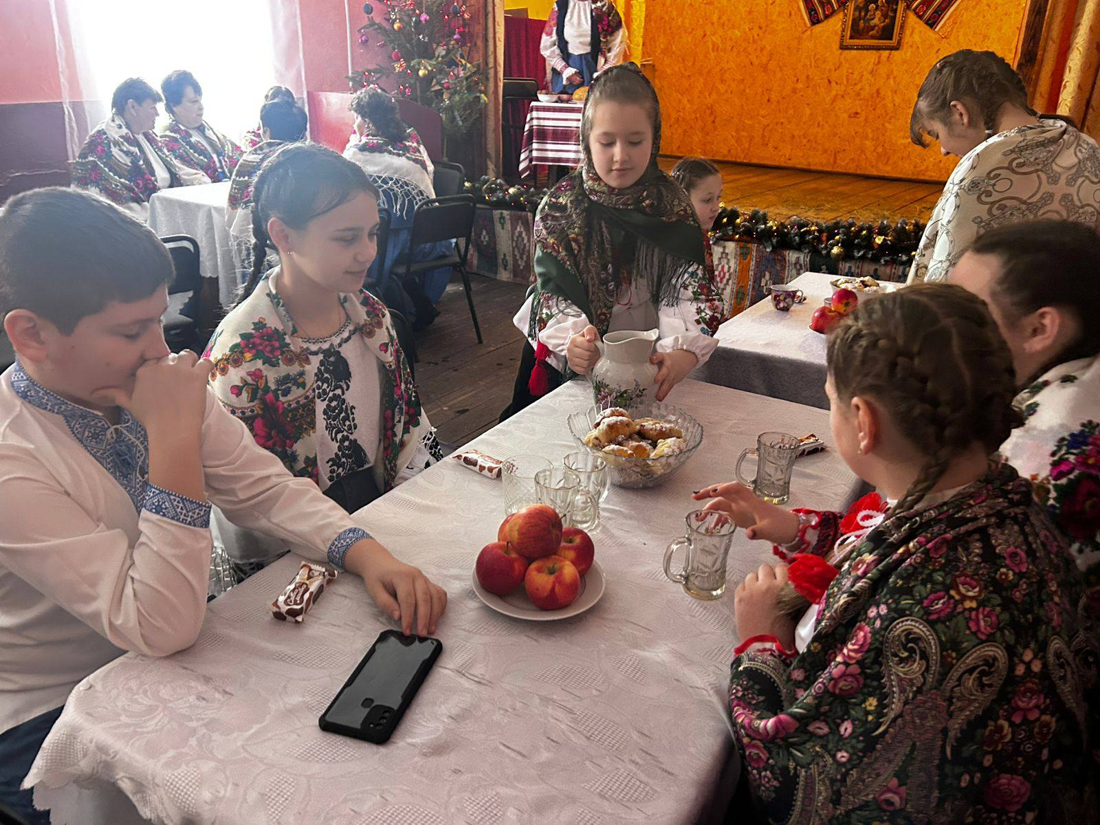 Усіх присутніх частували узваром та запашними домашніми кіфликами з лекваром. На завершення газдиня та онука подякували всім, що так файно колядували й Христа Бога вихваляли.