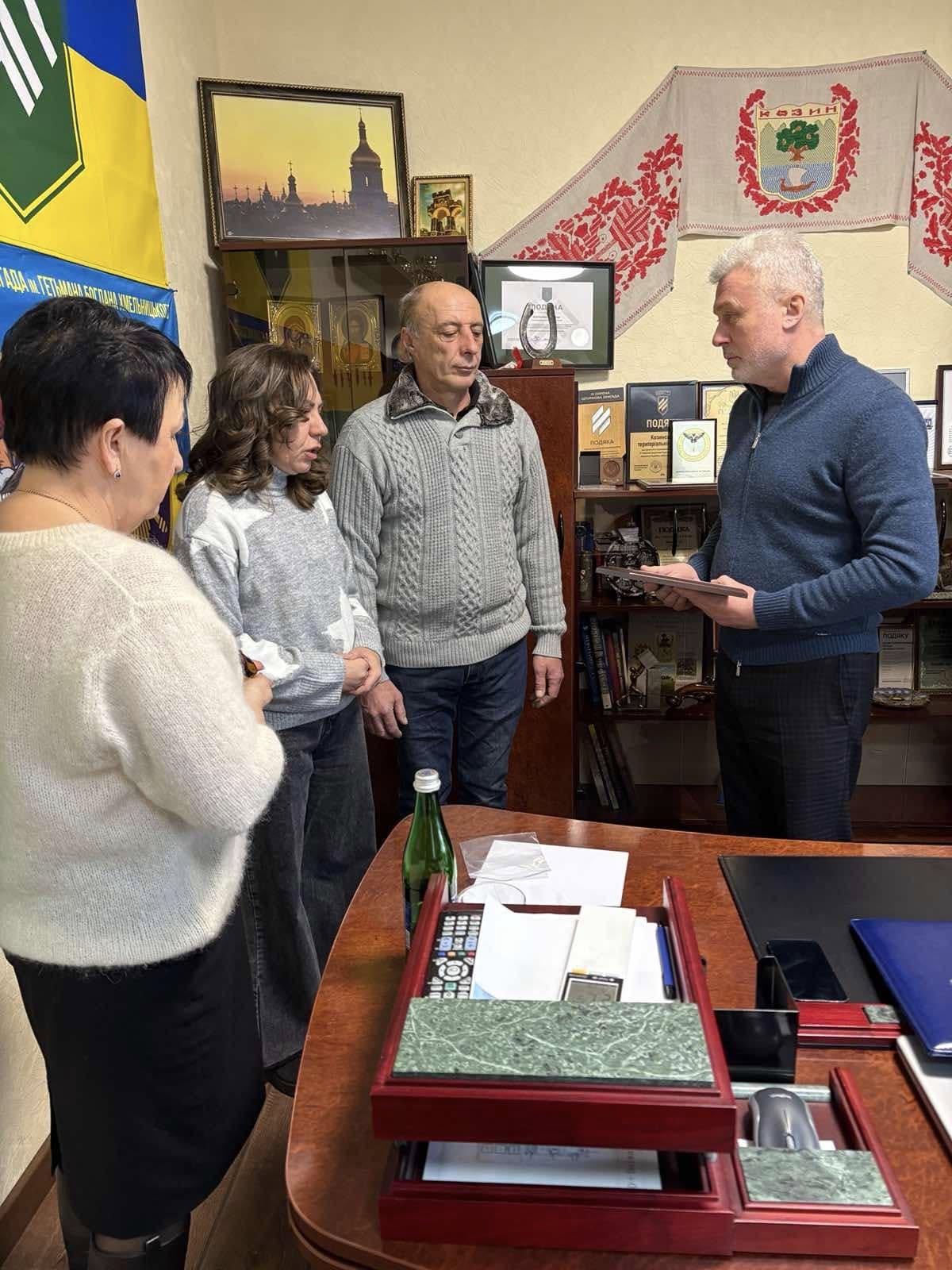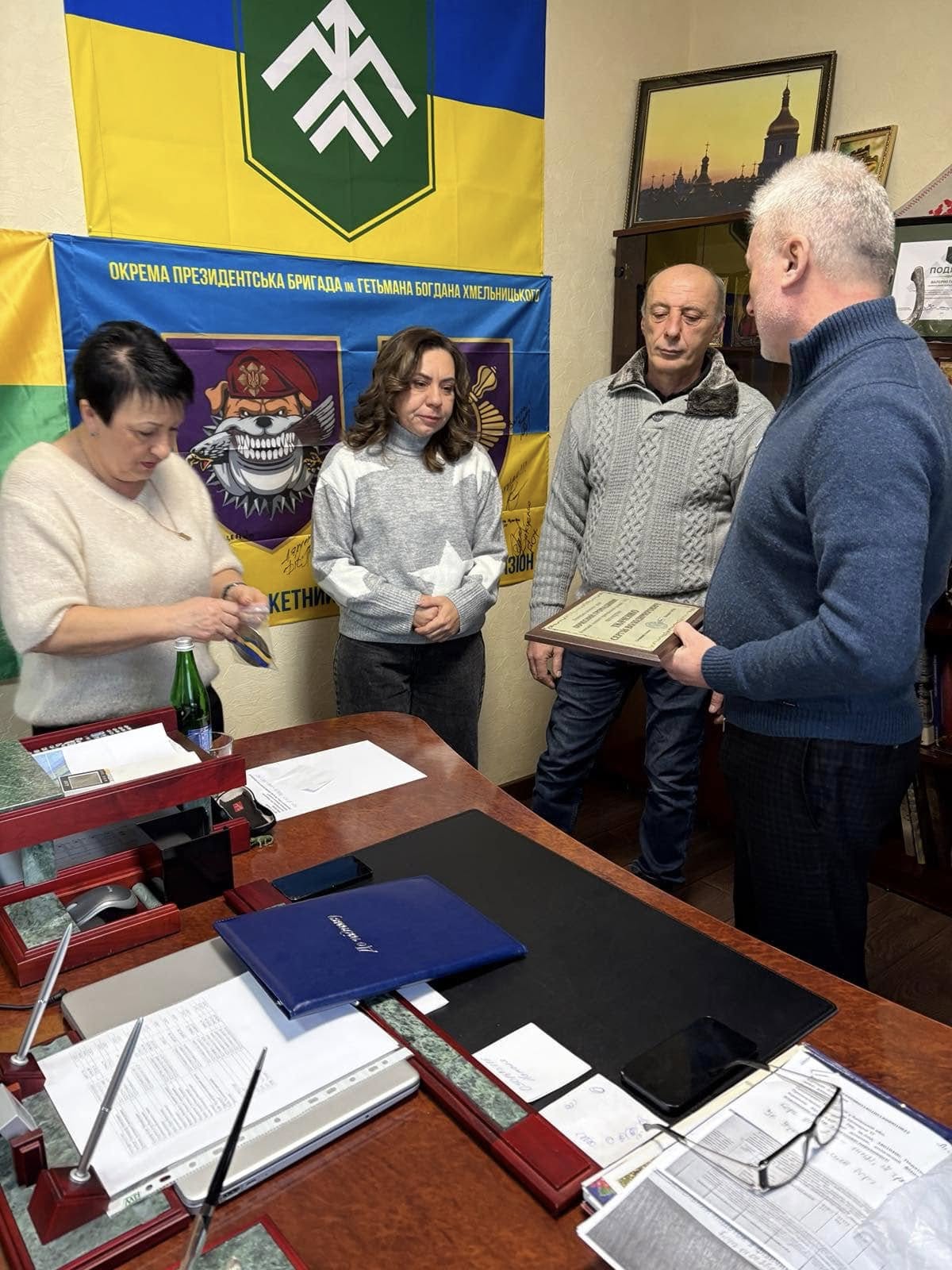 Голова Козинської селищної ради Гартік Валерій Володимирович та секретар ради Черванчук Тетяна Григорівна вручили високу відзнаку батькам Героя — Людмилі та Миколі, схиливши голови у глибокій шані перед подвигом їхнього сина.
