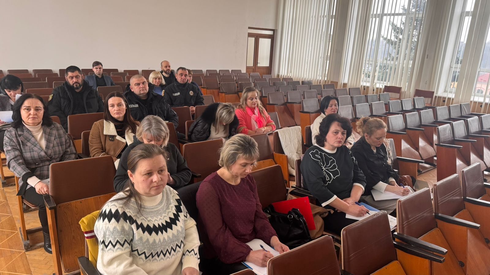 Перед присутніми виступила Наталія Мацко, заступниця селищного голови, голова Ради ВПО, голова координаційної ради з питань протидії насильству, яка ознайомила із аналізом стану виконання заходів і програм із запобігання та протидії домашньому насильству і насильству за ознакою статті на території Гусятинської селищної ради у 2025 році.