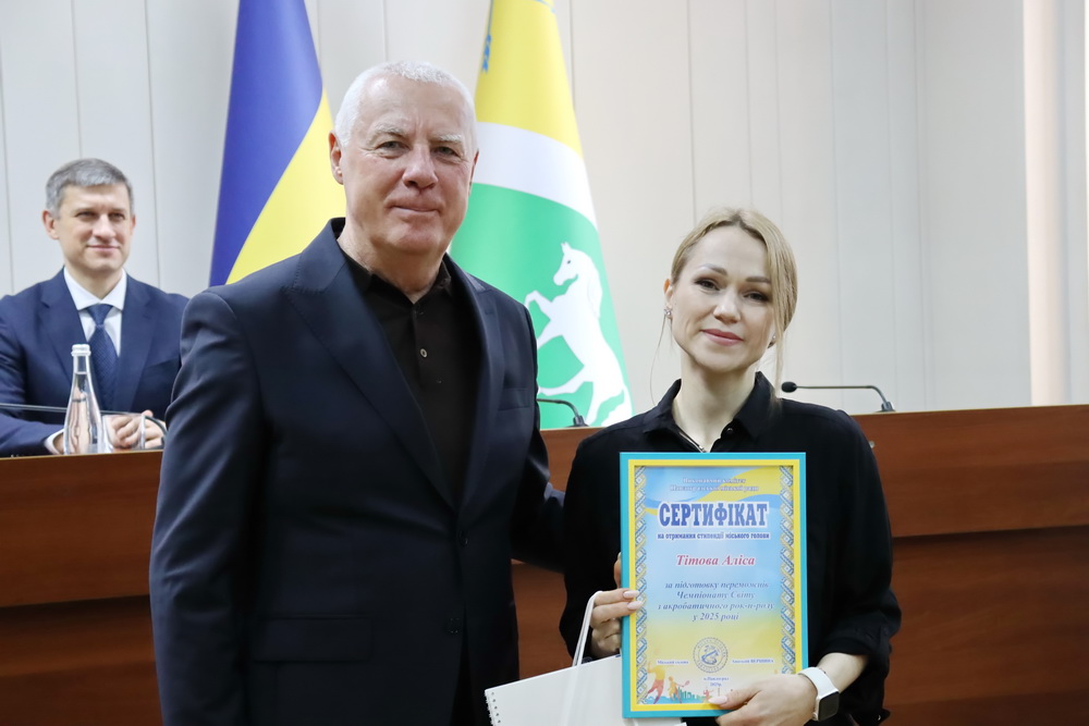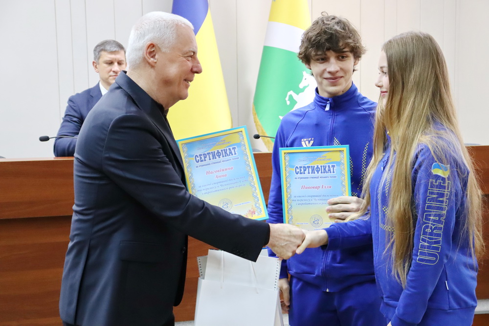 На початку засідання Анатолій Олексійович вручив сертифікати на отримання стипендії міського голови: