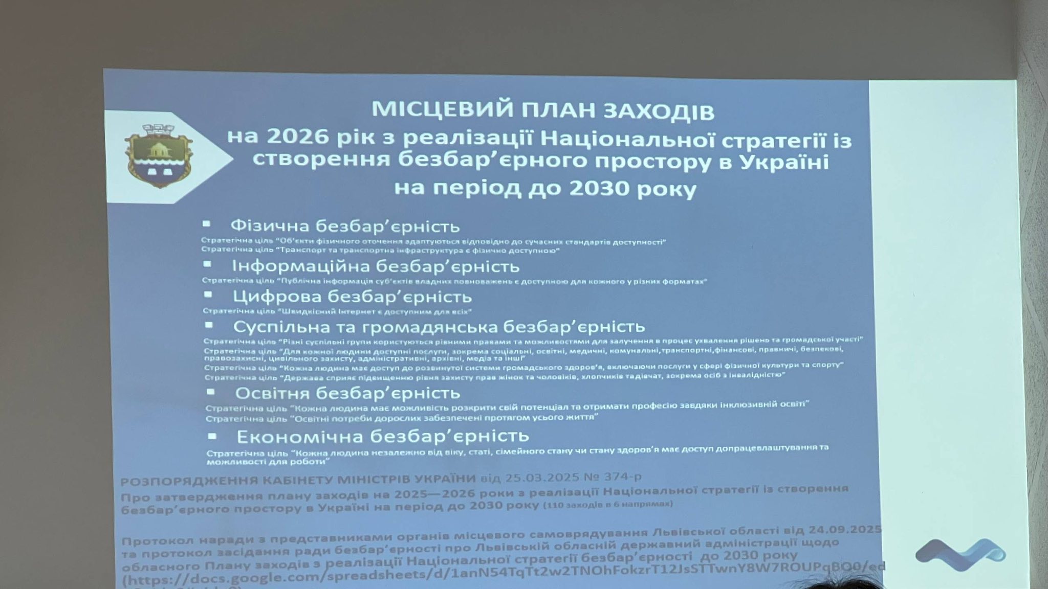 🔸Під час засідання обговорили реалізацію місцевого плану заходів на 2026 рік у межах Національної стратегії зі створення безбар’єрного простору в Україні до 2030 року. Основну увагу було приділено питанням забезпечення фізичної, цифрової та суспільної доступності для всіх мешканців громади, зокрема осіб з інвалідністю та маломобільних груп населення.