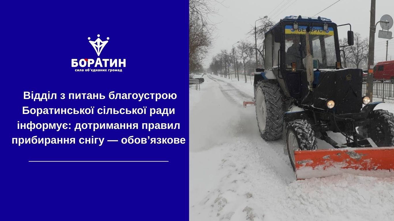 У зв’язку з зимовими погодними умовами відділ з питань благоустрою Боратинської сільської ради нагадує про необхідність дотримання Правил благоустрою.